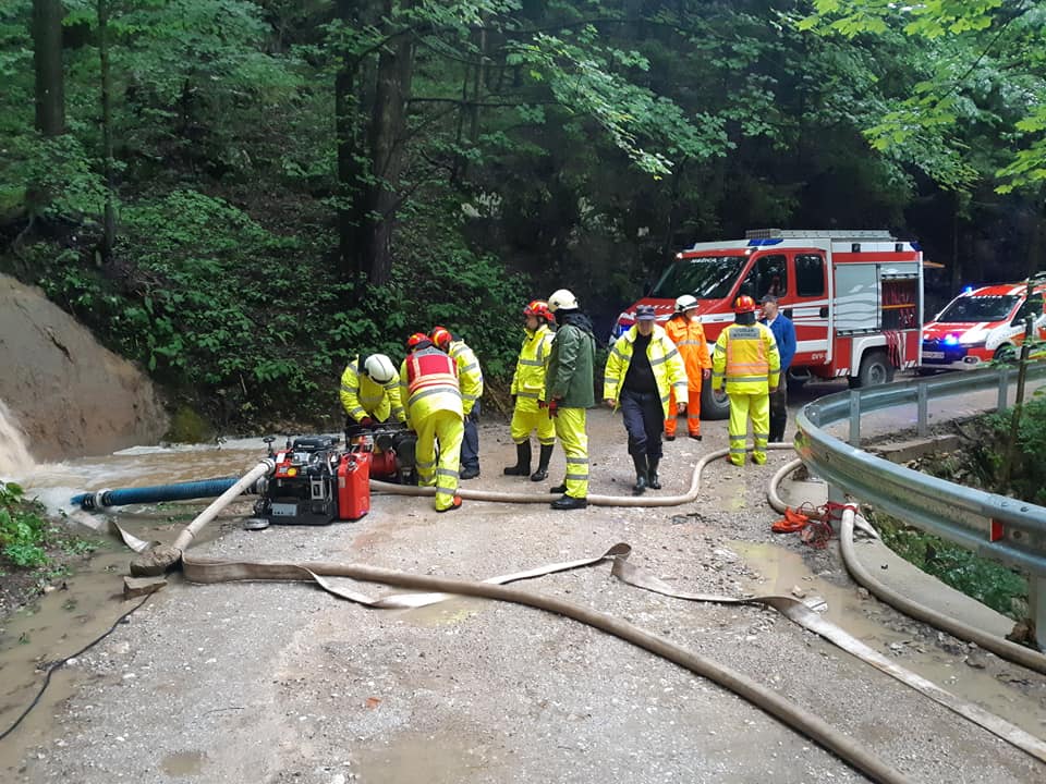 - Ob 11.25 je na Trgu 29, meteorna voda ogrožala kleti stanovanjskega bloka. Vdor vode so preprečili gasilci PGD Prevalje.