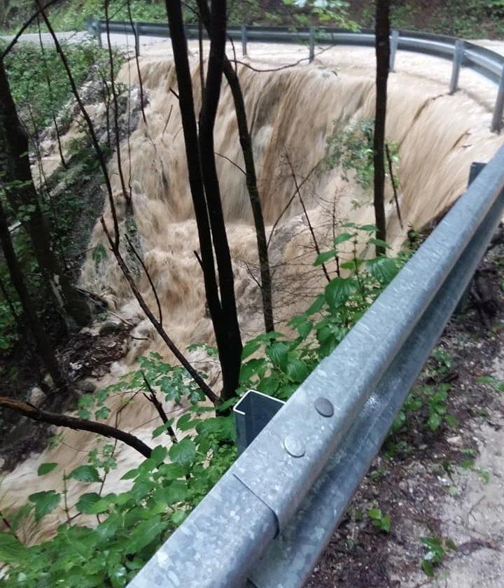 VIDEO: Običajno majhna reka Paka se je včeraj po neurju s silovitimi nalivi spremenila v ogromno reko. Video je nastal ob cesti skozi Hudo luknjo, med Velenjem in Mislinjo, v kraju Završe, južno od Gornjega Doliča. VIR: Neurje.si, avtor: Tjanči Barle.