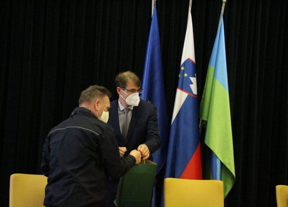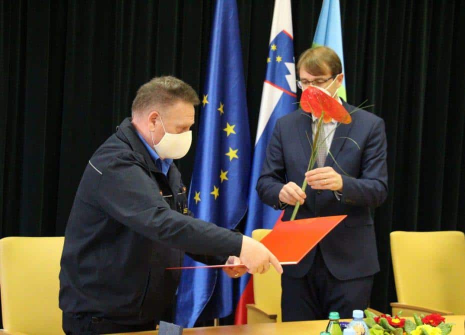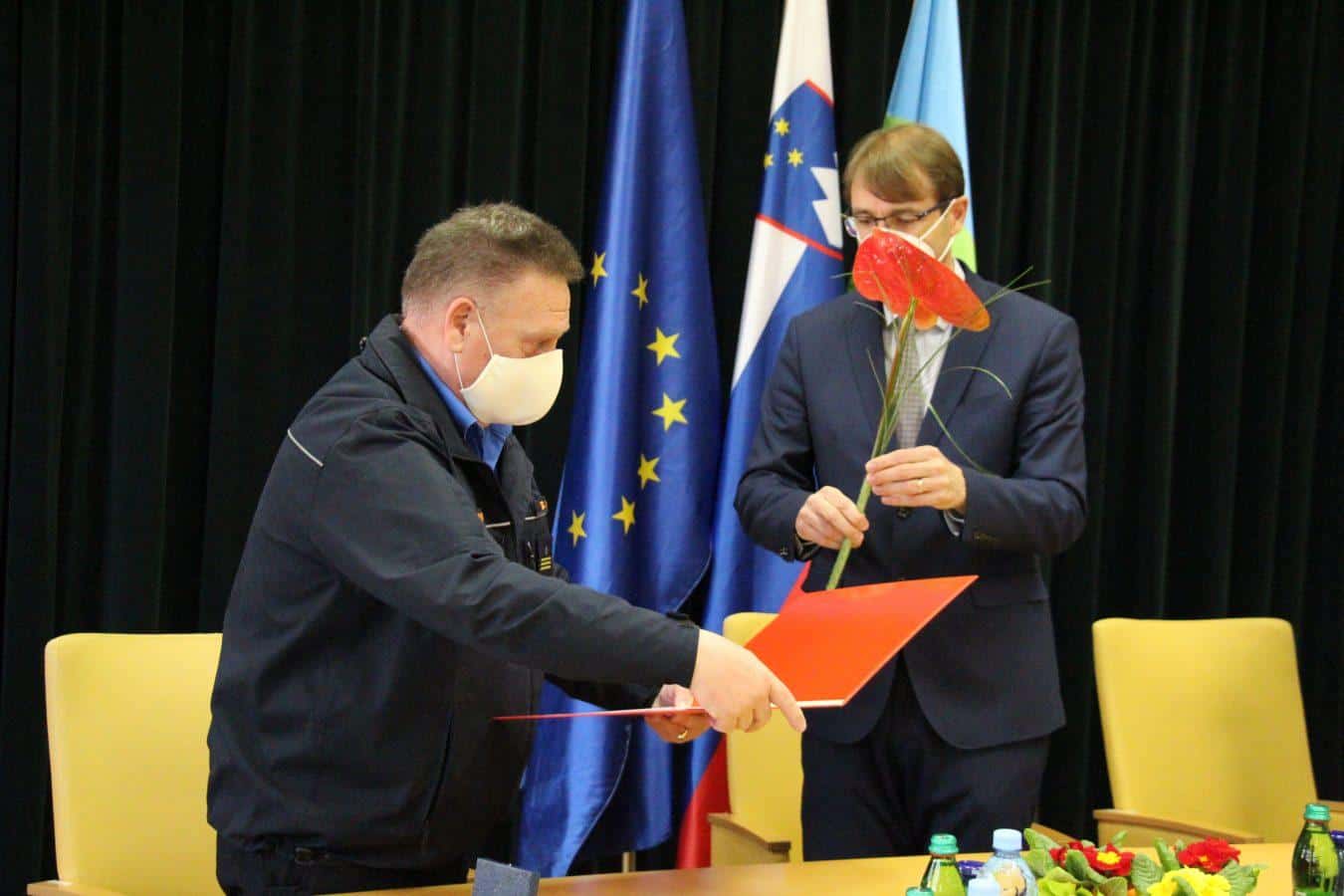 Branko Kaker, ki je najprej delal kot strokovni sodelavec za civilno zaščito in nato še kot poveljnik štaba CZ in vodil vrsto dejavnosti občinske komisije za ocenjevanje škode ob vseh naravnih in drugih nesrečah v obdobju zadnjih desetih let, je danes iz rok župana dr. Tomaža Rožena, ob upoštevanju vseh ukrepov za preprečevanje širjenja okužbe s covidom-19, prejel srebrni znak Civilne zaščite RS. Ob tej priložnosti se mu župan zahvalil za ves trud, delo in podporo, hkrati pa je izrekel zahvalo vsem članom CZ. Rožen je še poudaril, da bi si Kaker zaslužil zlato priznanje, vendar mu je država namenila srebrno. Slovesnosti se je med drugim udeležila tudi direktorica občinske uprave mag. Vlasta Kupljen