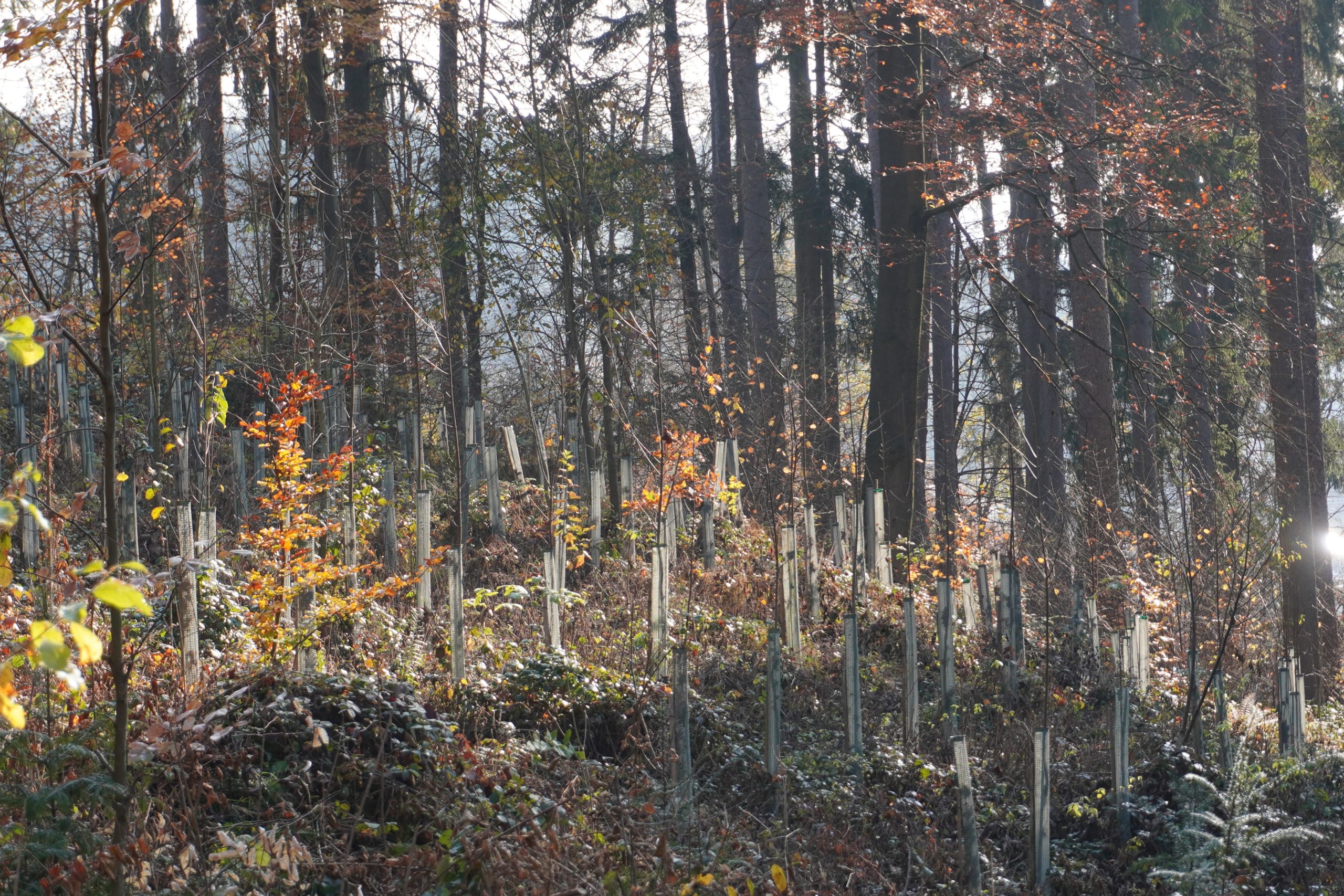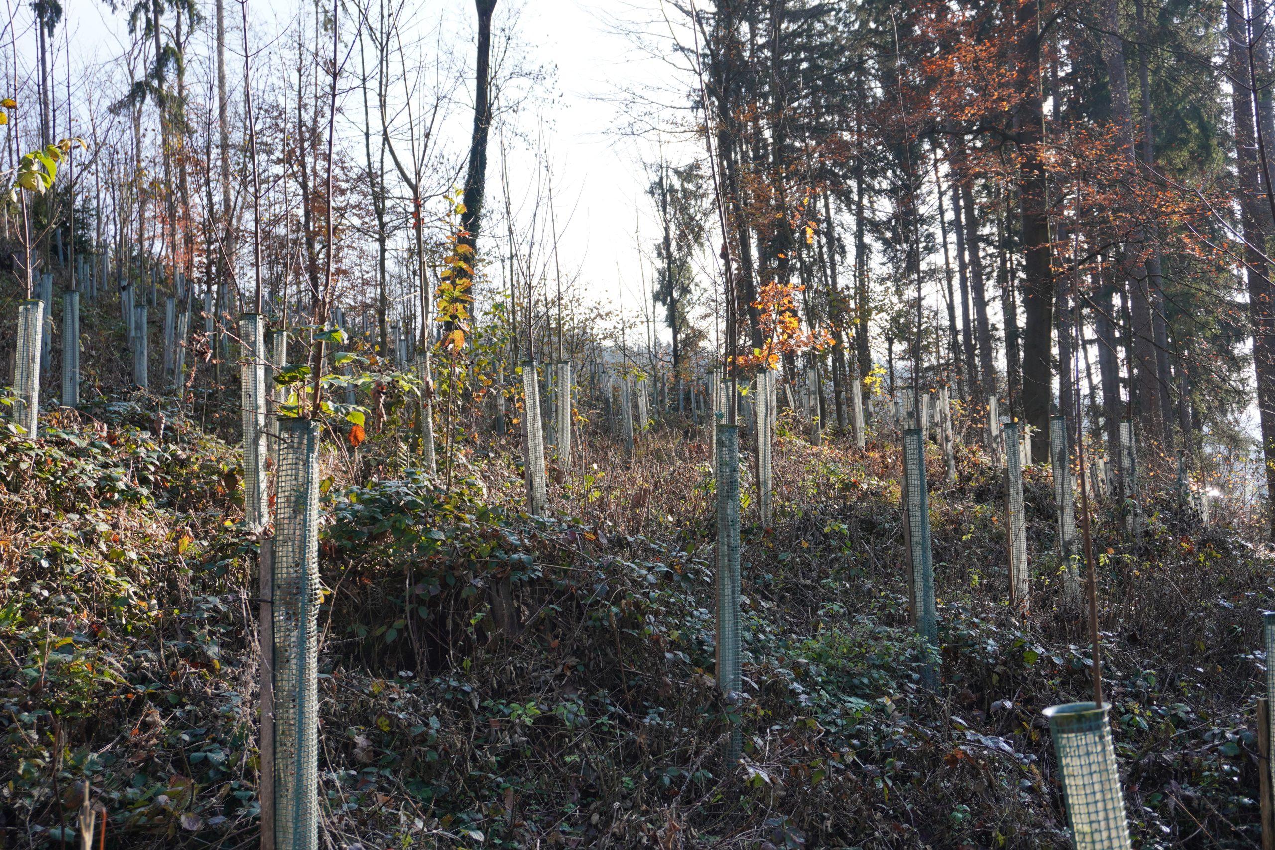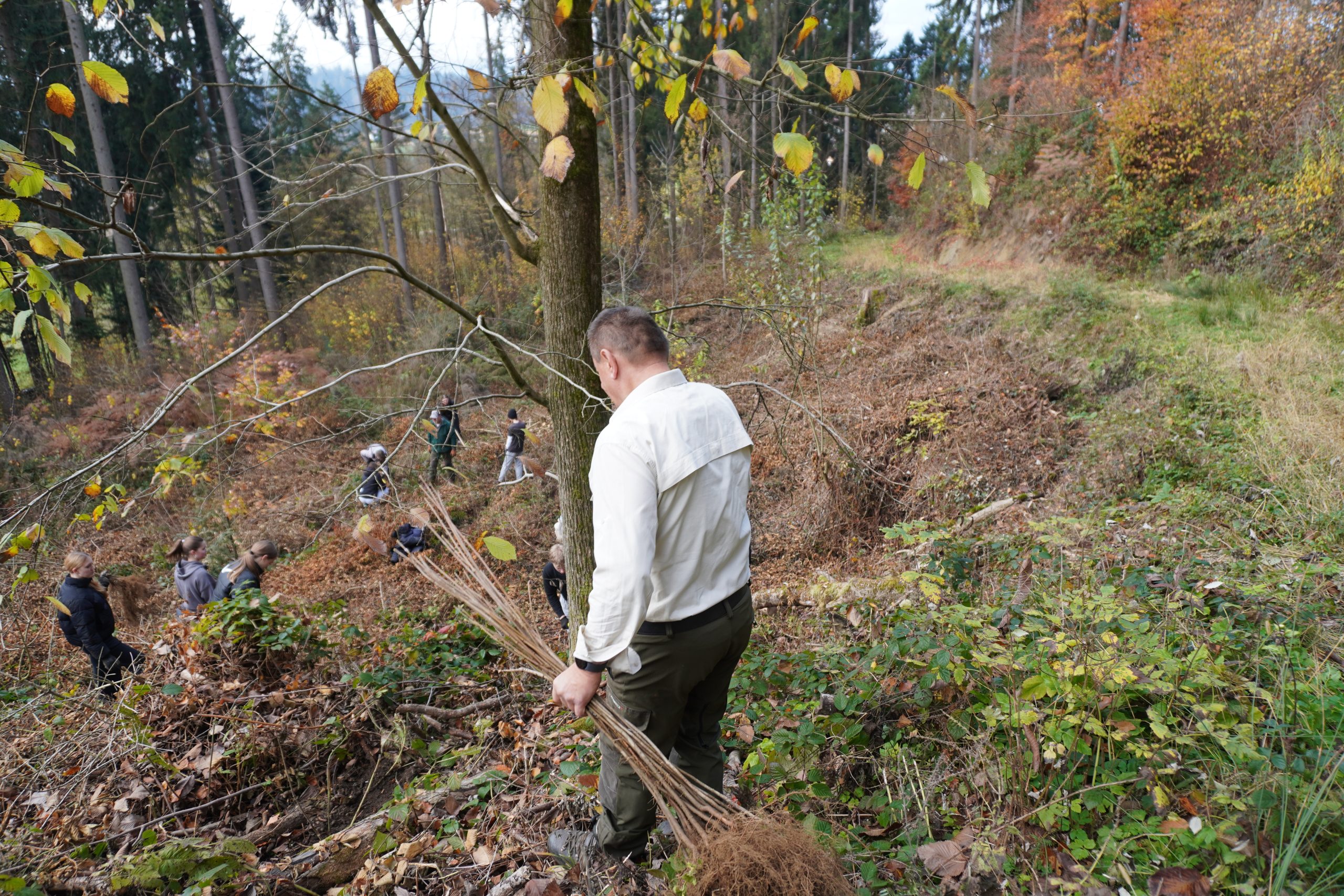 "To lokacijo smo izbrali, ker je v tem gozdu bil močno prisoten vetrolom in kasneje napad podlubnikov. Rastišče je izjemno bogato in je naravna obnova otežena,", je poudaril. Sadijo več drevesnih vrst, predvsem listavce, pri tem skrbijo za raznovrstnost in vključenost plodonosnih drevesnih vrst.