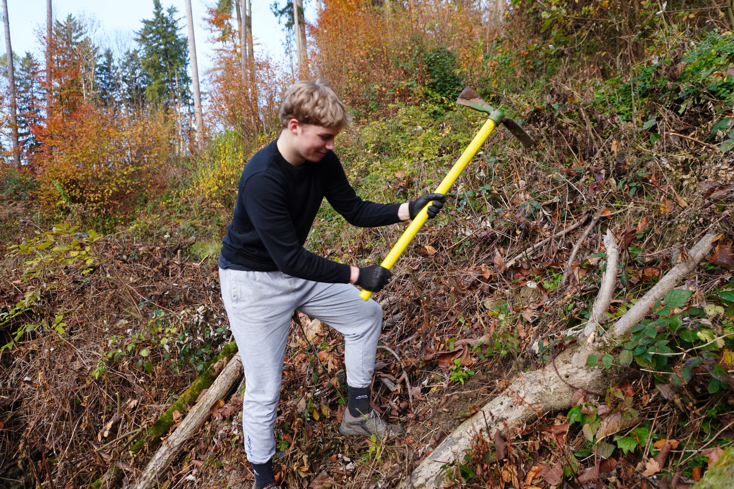 Na sončno, a hladno novembrsko jutro so se v gozdu na Legnu zopet zbrali dijaki 3. letnika Gimnazije Slovenj Gradec in vodja Zavoda za gozdove Slovenije, krajevne enote Slovenj Gradec Avgust Kunc.