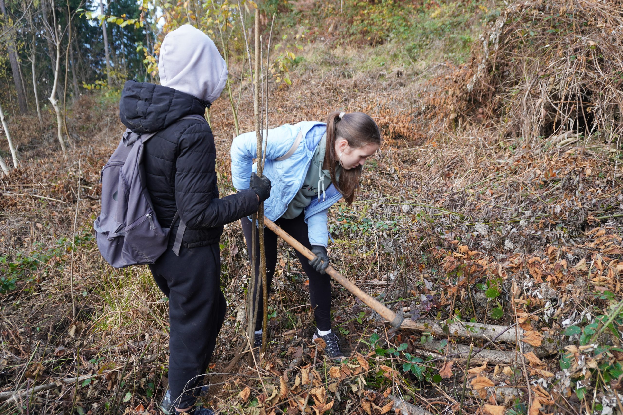 Dijaki so v okviru naravoslovnega predmeta ITS v sodelovanju z Zavodom za gozdove Slovenije, območno enoto Slovenj Gradec, danes, 7. novembra, tako uspešno zaključili projekt, v okviru katerega so zasadili veliko število sadik dreves.