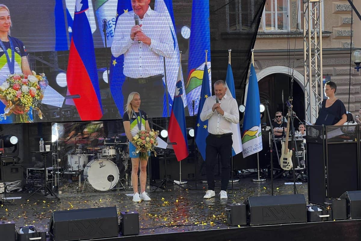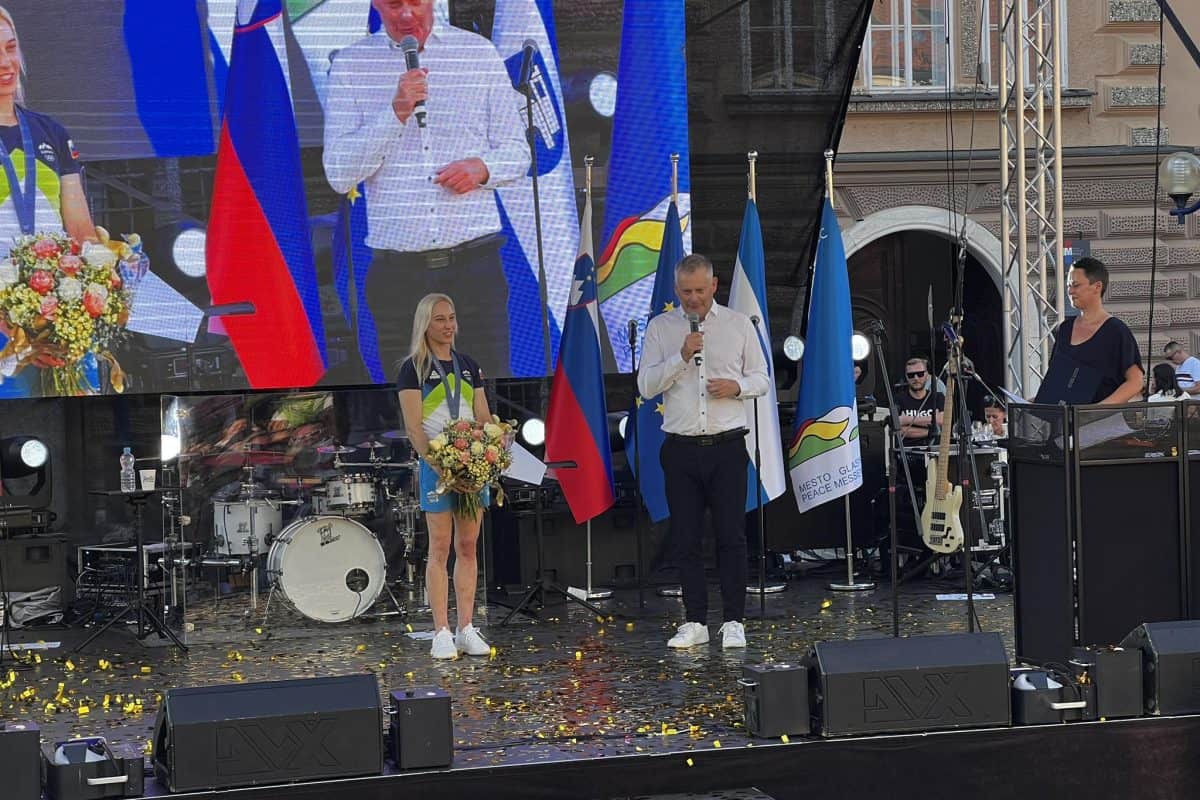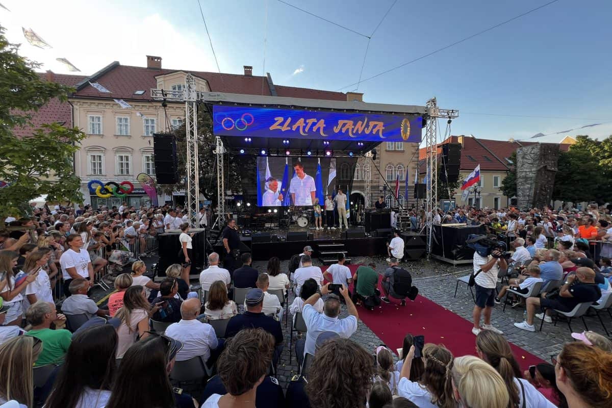 Miha Deželak je nagovoril Slovenjgradčane: "Kapo dol Janji za neverjetno, zgodovinsko dejanje. To da ubraniš olimpijsko zlato, je nekaj neverjetnega. Lepo bodite Slovenj Gradec."