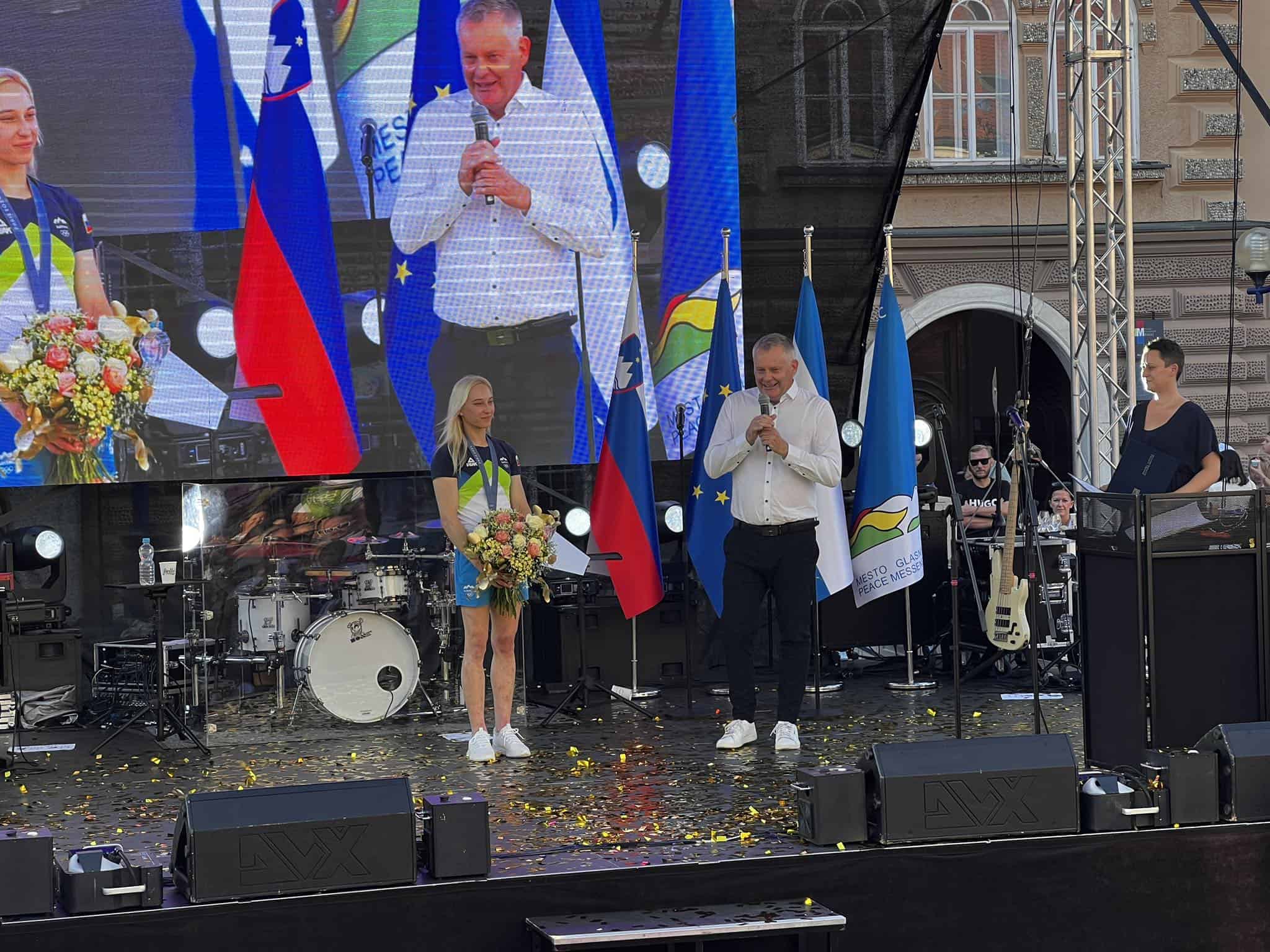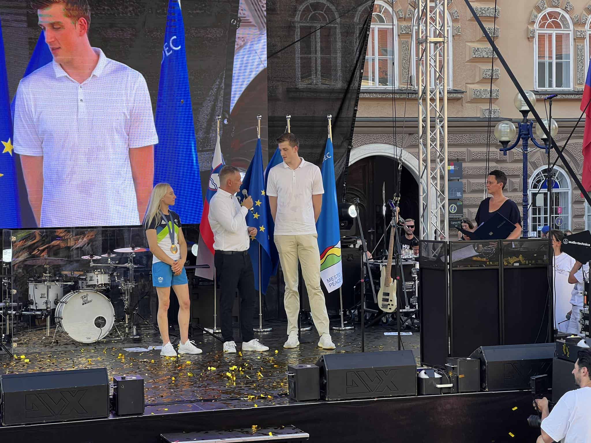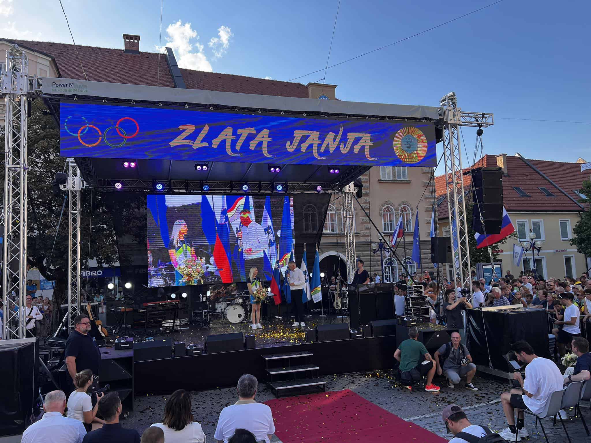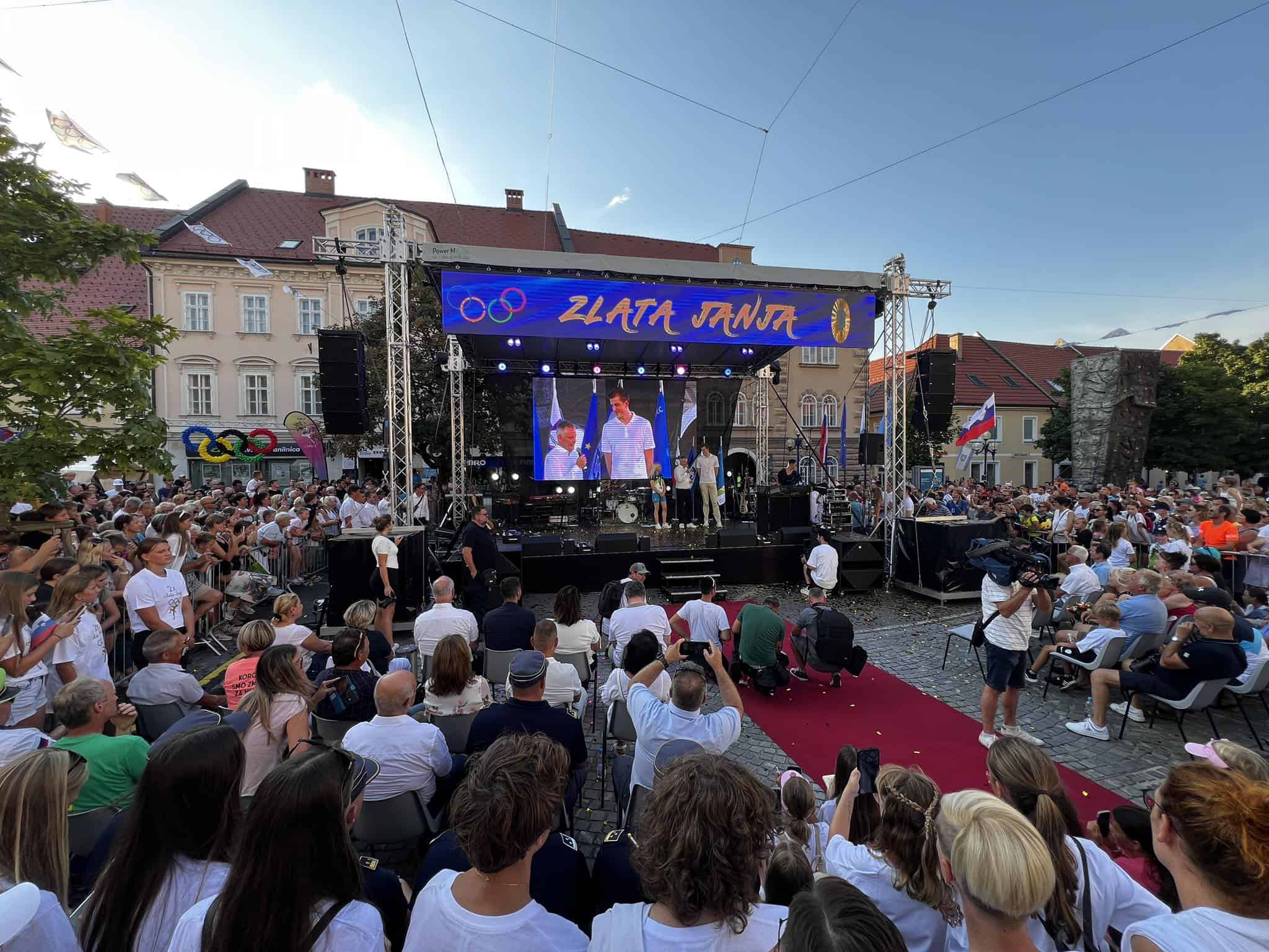 Miha Deželak je nagovoril Slovenjgradčane: "Kapo dol Janji za neverjetno, zgodovinsko dejanje. To da ubraniš olimpijsko zlato, je nekaj neverjetnega. Lepo bodite Slovenj Gradec."