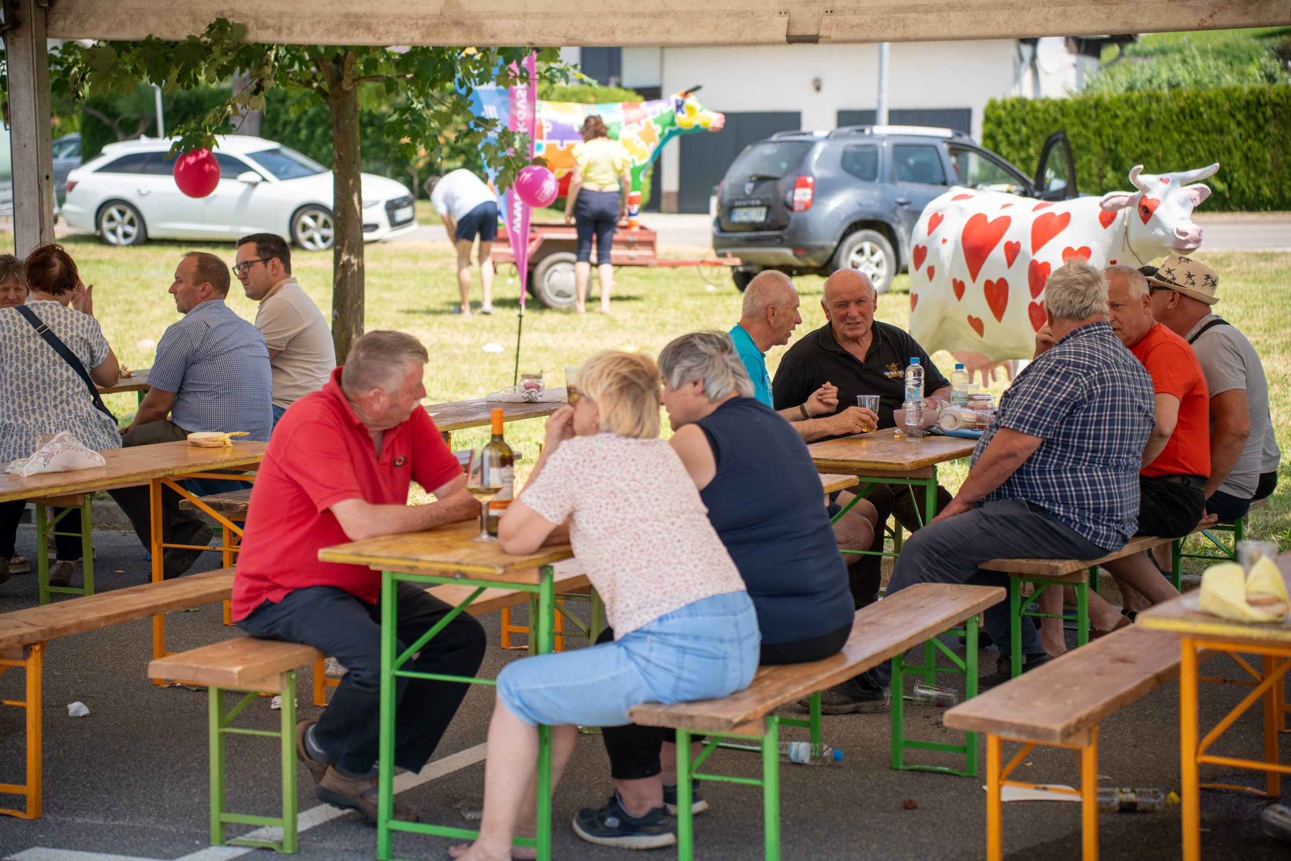 Pred trgovino se je zbralo lepo število obiskovalcev, radovednežev, ljubiteljev mlečnih izdelkov in tistih, ki so v upanju na zmago sodelovali v nagradni igri. Organizatorji so poskrbeli za prijetno dogajanje: