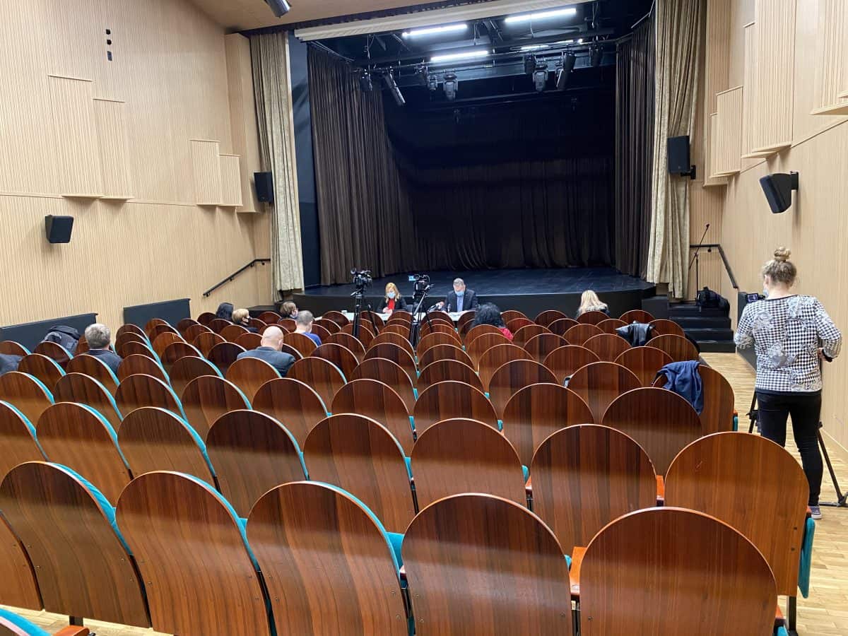 Tiskovna konferenca je potekala v prenovljeni dvorani Kulturnega doma Slovenj Gradec, sledil pa je tudi ogled gradnje bloka neprofitnih stanovanj ter bazenskega kompleksa s parkom urbanih športov.