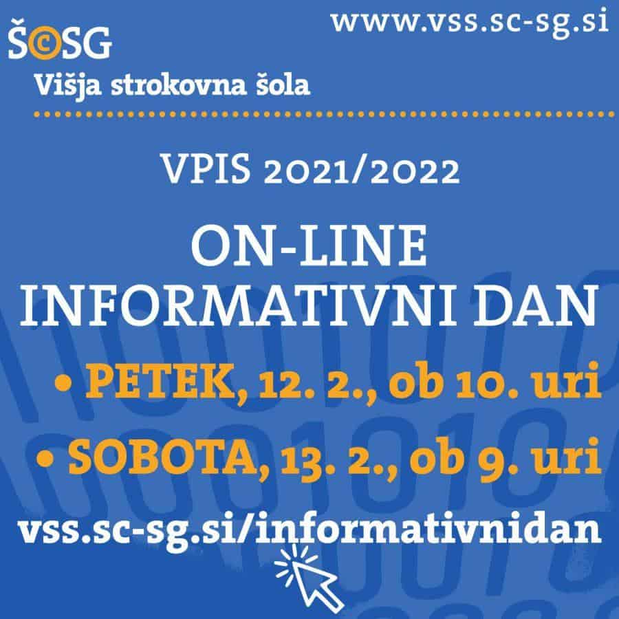 ON-LINE informativni dan bo potekal v petek, 12. 2. 2021, ob 10. uri in v soboto, 13. 2. 2021, ob 9. uri, na povezavi: http://vss.sc-sg.si/informativnidan.