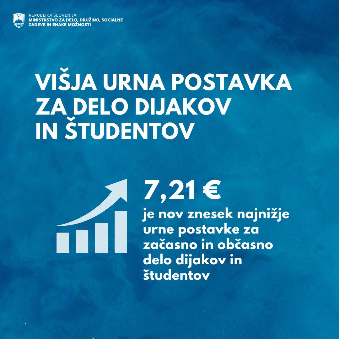 Tako se minimalna bruto urna postavka za opravljeno študentsko delo s 6,92 evra poviša na 7,21 evra bruto.