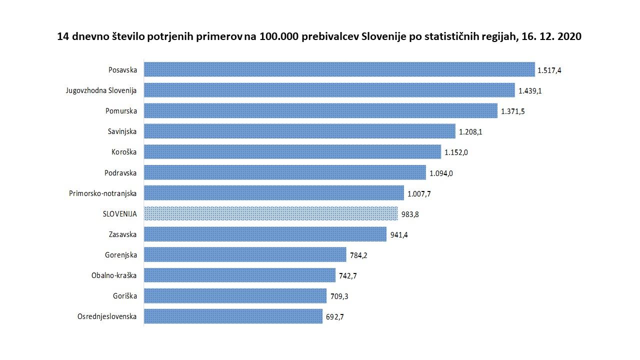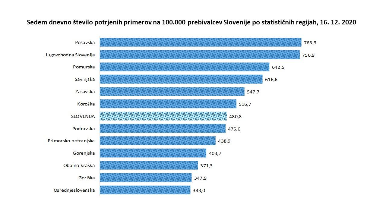 Najboljšo epidemiološko sliko v državi imajo osrednjeslovenska, gorenjska, goriška, obalno-kraška regija. Bolje kaže tudi primorsko-notranjski in podravski regiji.