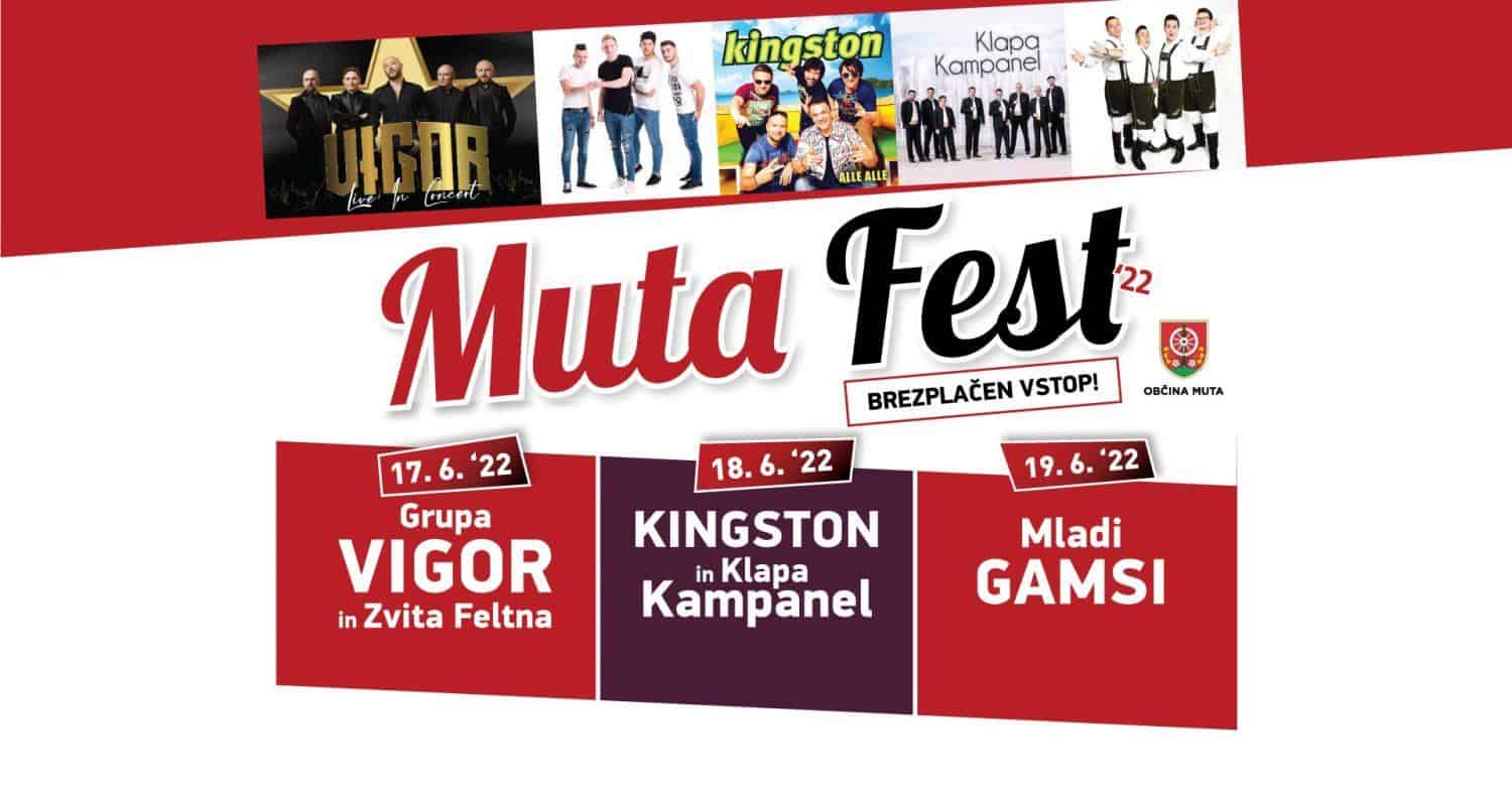 V juniju občina Muta praznuje svoj praznik, v okviru katerega se bo odvila tudi tridnevna prireditev Muta Fest. Zato konec tedna vabljeni na igrišče pri OŠ Muta, kjer se obeta nepozabna zabava s priznanimi glasbenimi izvajalci.