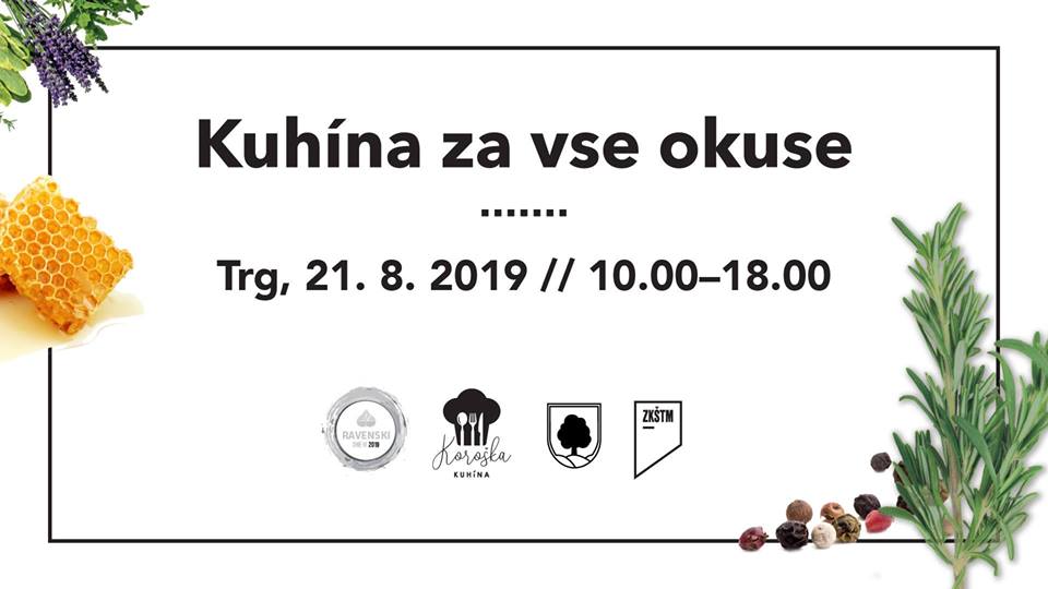 - 9.00 AVGUŠTINOV SEJEM RAVNE - V okviru Ravenskih dnevov bo v sredo, 21. avgusta 2019, od 9:00 v centru mesta organiziran tradicionalen Avguštinov sejem z bogato domačo in eko ponudbo, domačo umetnostno obrt, suho robo, kulinarično ponudbo ... V neposredni bližini bo celotno dogajanje popestrila tudi KOROŠKA KUHÍNA, kjer se bodo gostinci predstavili s svojimi specialitetami, obiskovalci bodo lahko uživali v omamnih vonjih in okusih (Trg Ravne)