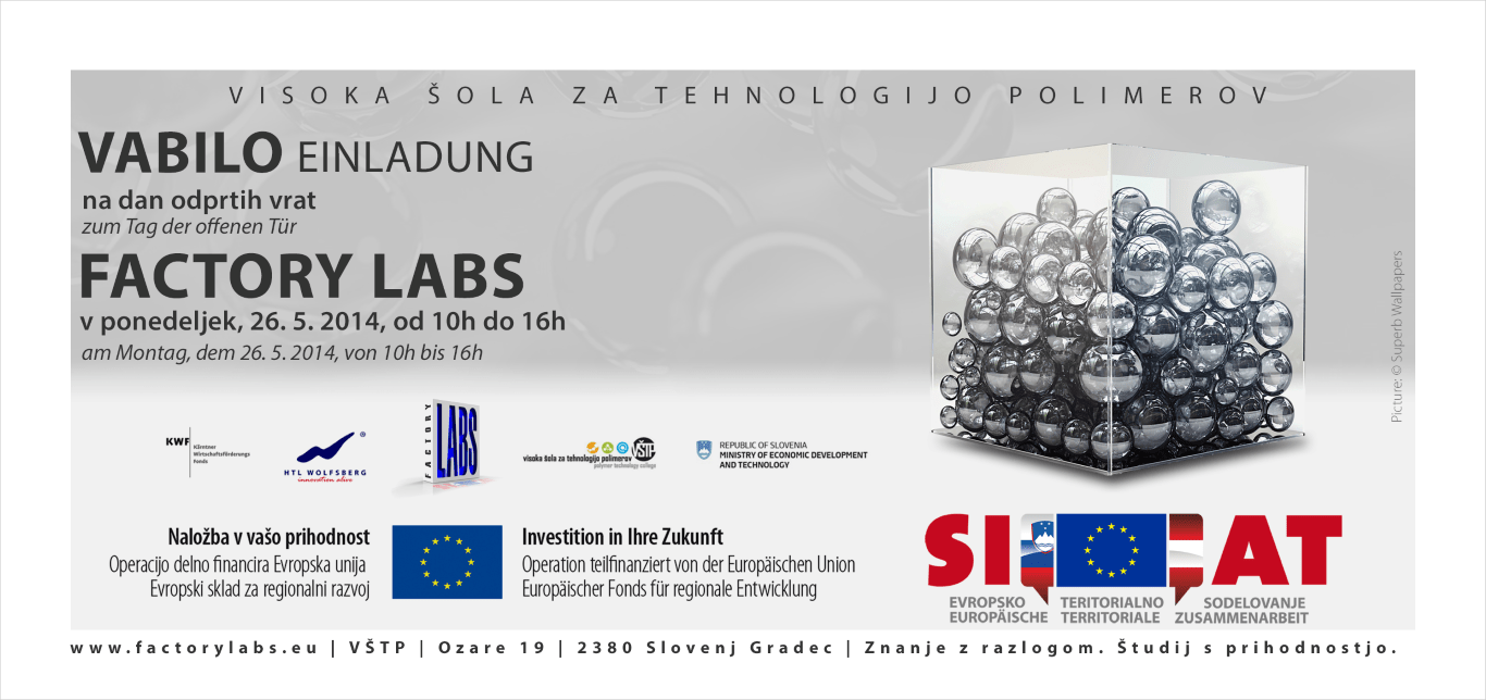 V projektu Factory Labs je VŠTP skupaj s partnerjem, tehnično šolo HTL iz Wolfsberga vzpostavila dva učno-/izvedbena laboratorija s področja učinkovitosti proizvodnje, razvoja izdelkov, trajnostnega razvoja, virov-/energijske učinkovitosti, ocene življenjskega cikla, in sicer enega v Sloveniji in enega v Avstriji. Operacijo delno financira Evropska unija, in sicer iz Evropskega sklada za regionalni razvoj. Operacija se izvaja v okviru Evropskega teritorialnega sodelovanja, Operativnega programa Slovenija-Avstrija 2007-2013.