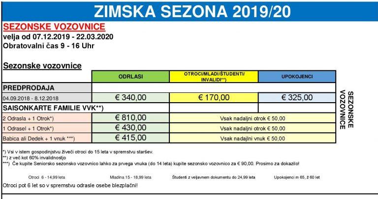 Cene vozovnic za smučarsko sezono 2019/20 še niso točno določene, so pa TUKAJ za občutek dostopne lanske tarife.