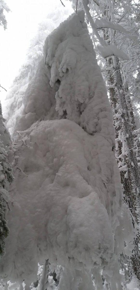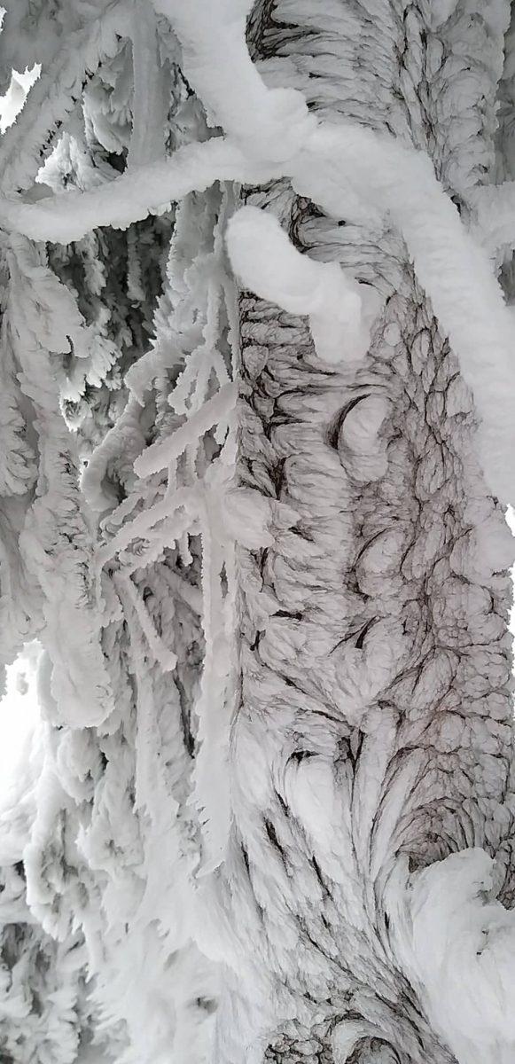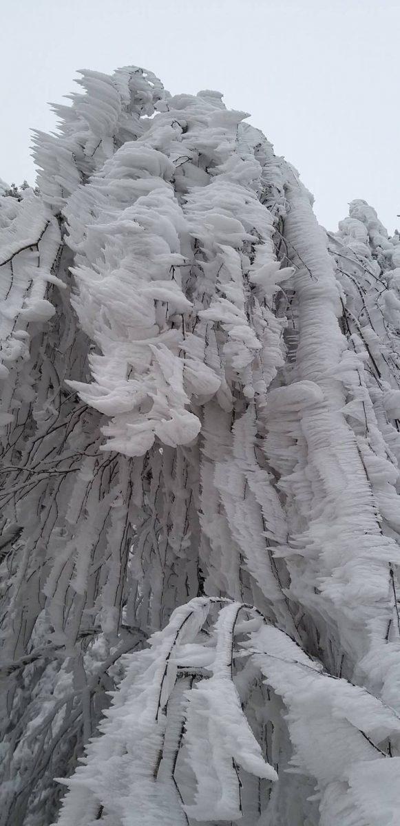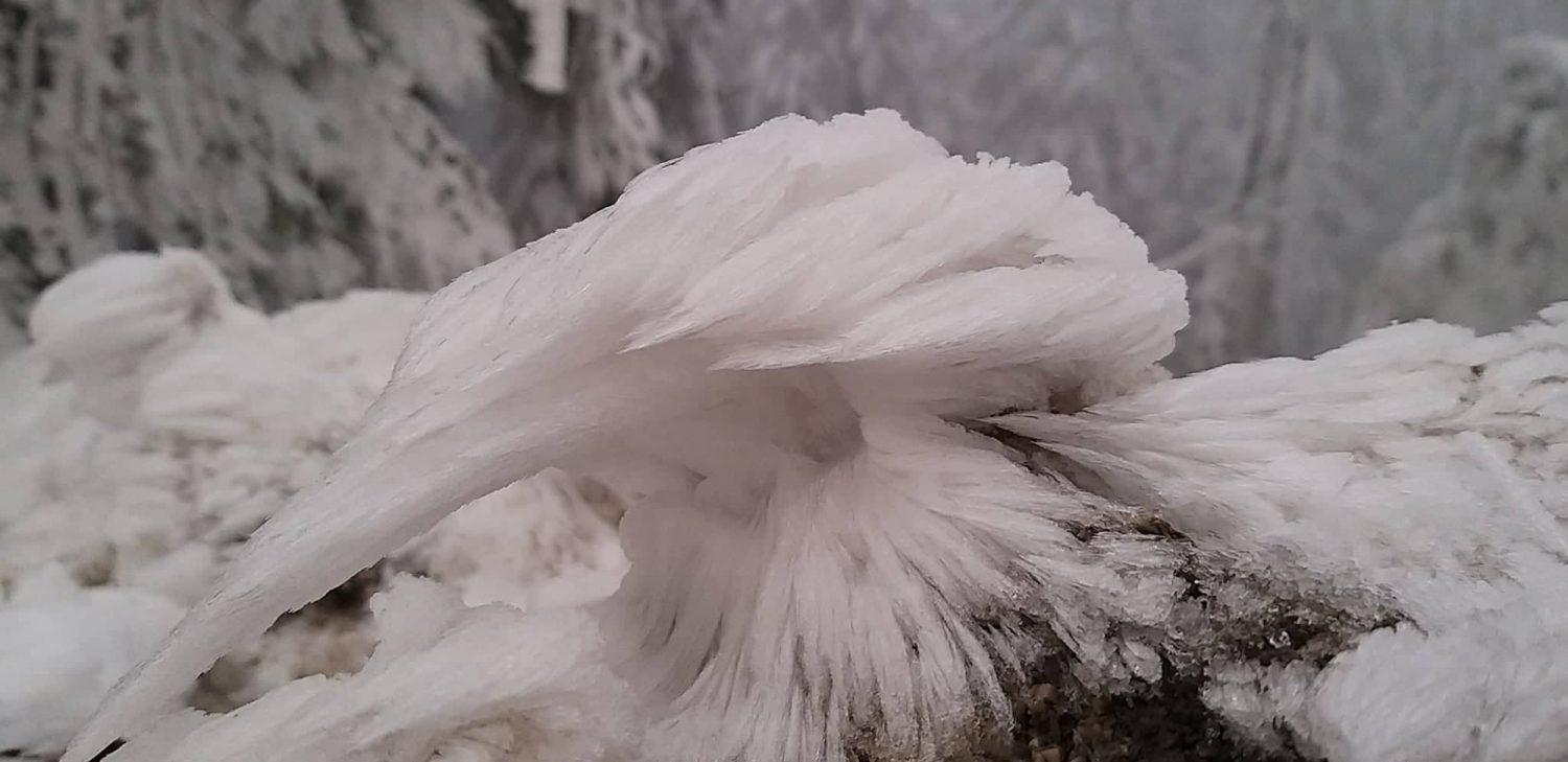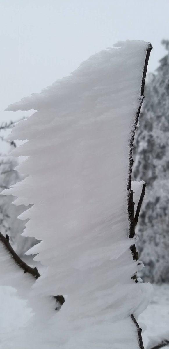Fotografije so bile posnete danes na območju Breznice na nadmorski višini okoli 750 m, kjer se na snežni podlagi že tretji teden kopiči inje, saj je pokrajina obdana z meglo vse dni.