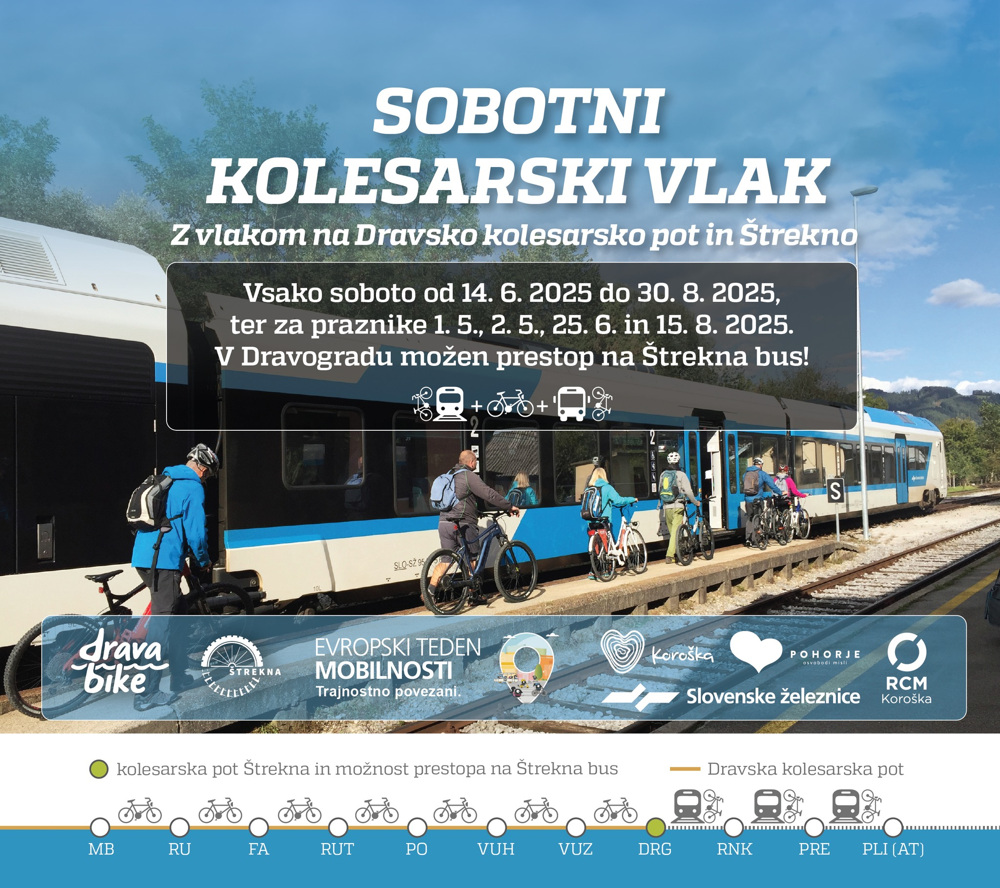 Prihajajoči sončni dnevi so odlična priložnost za raziskovanje narave na dveh kolesih. Tudi letos bo že za prvomajske praznike, 1. in 2. maja, znova vozil kolesarski vlak na relaciji Maribor – Pliberk – Maribor, ki omogoča enostavno načrtovanje izleta po slikoviti Dravski kolesarski poti.