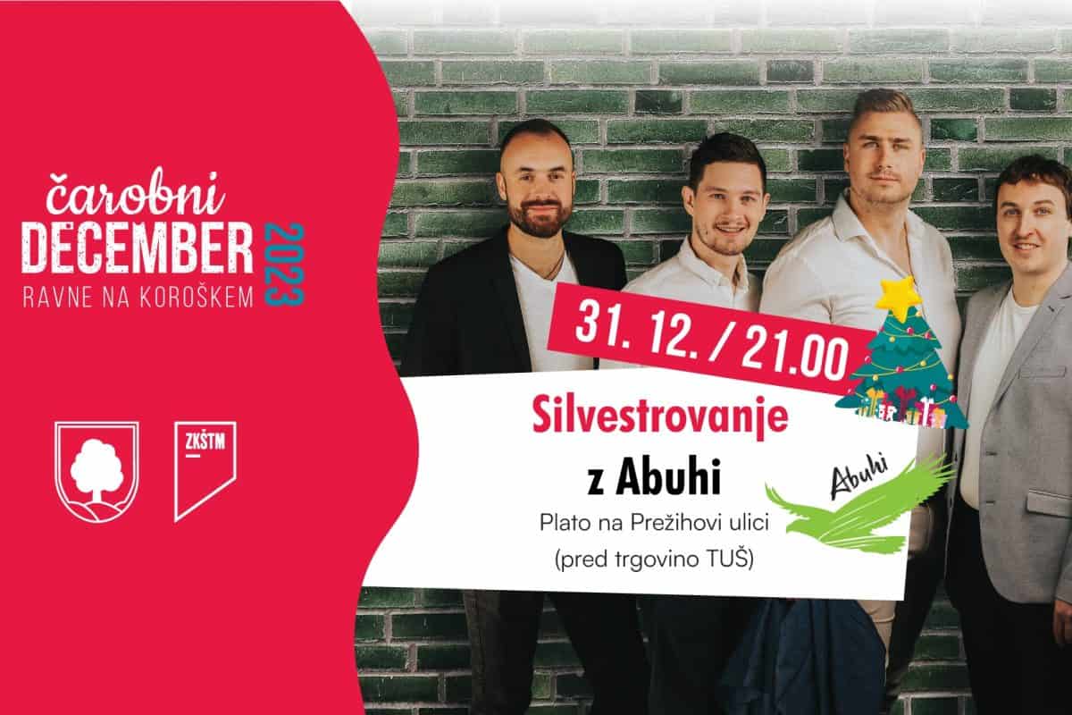 Ker nas najdaljša decembrska noč še čaka, bo tudi ta zagotovo nekaj posebnega. Na mestnem platoju na Ravnah bomo jutri, 31. decembra 2023, skupaj pričakali novo leto 2024. Za pravo vzdušje in nepozabno zabavo bodo od 21. ure naprej skrbeli fantje skupine Abuhi, Korošci, ki vedno poskrbijo za dober žur in tudi jutrišnje silvestrovanje ne bo izjema.