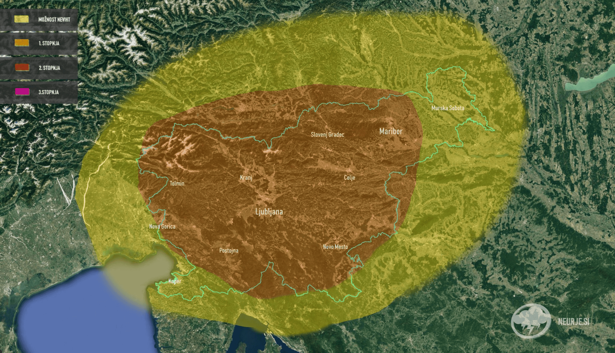 Tekom današnjega dne se lahko po državi povsod razvijejo nevihte, ki lahko ponekod prerastejo v krajevna neurja. Trenutno se nad južnim delom države že pojavljajo nevihte, ki potujejo v smeri severa, severovzhoda, saj v višinah prevladuje južni oz. jugozahodni veter. Ob relativno visokem deležu konvektivne energije lahko pričakujemo pogoste udare strel, močne nalive, možna pa je tudi manjša toča.