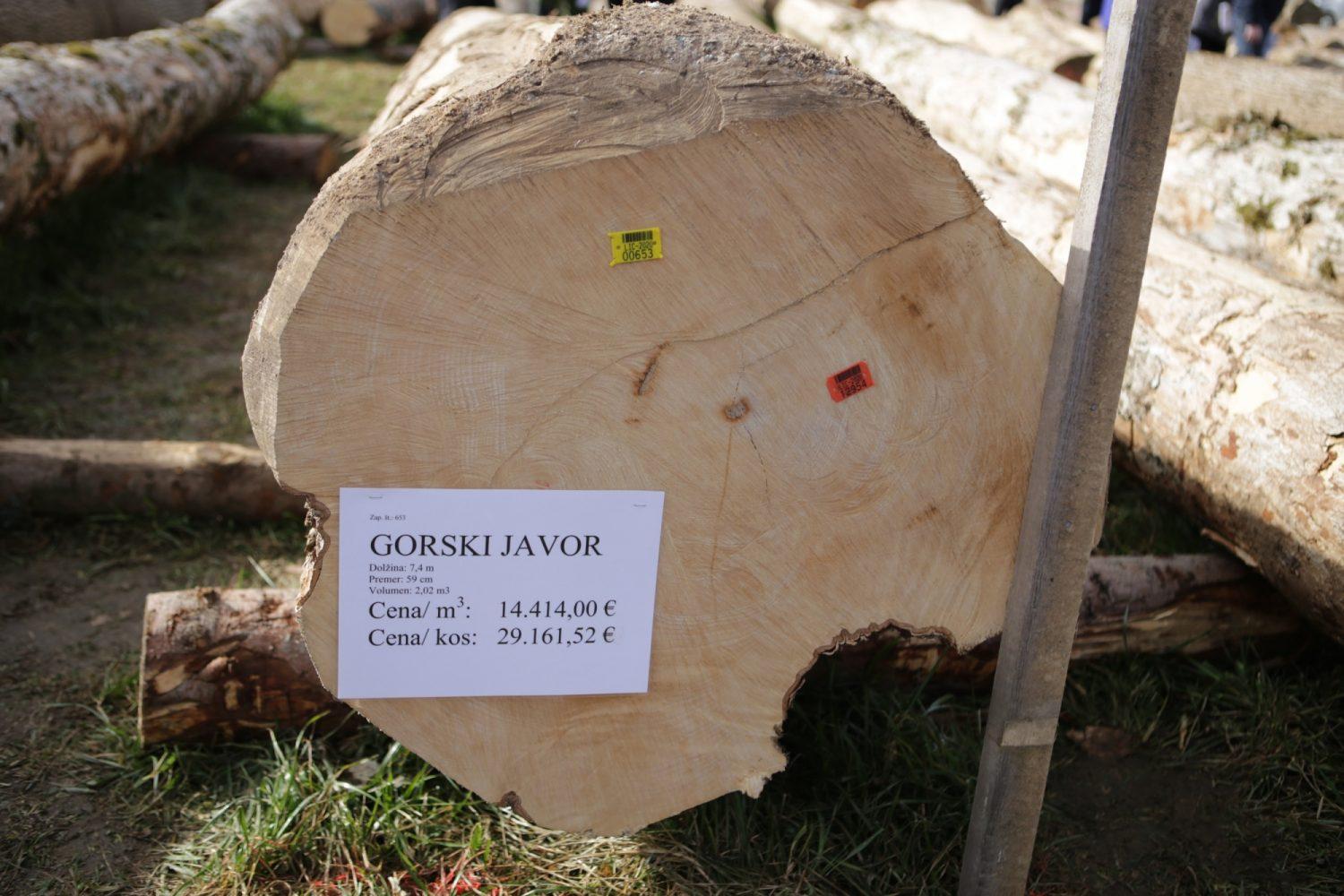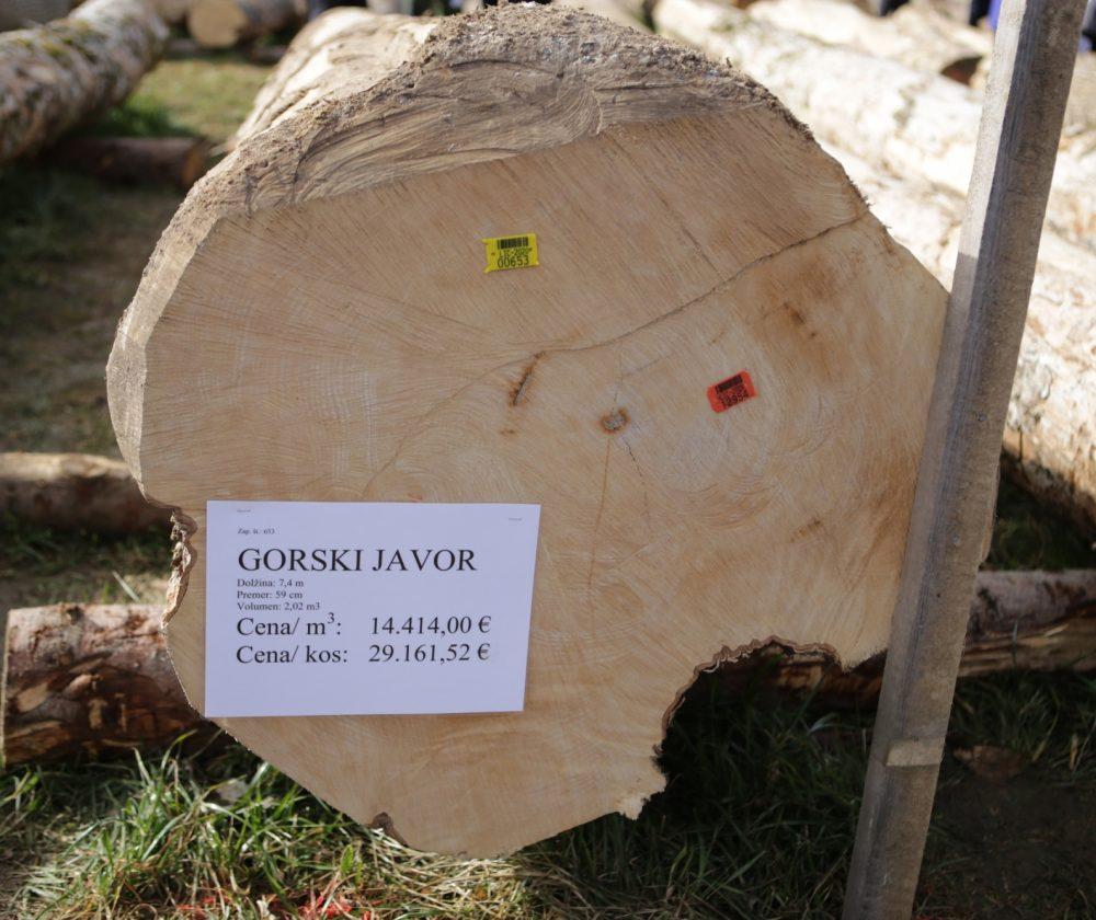 Povprečna cena za kubični meter lesa je na letošnji licitaciji znašala 265 evrov, najvišje dosežena cena pa je bila 14.414 evrov na kubični meter oziroma 29.161,52 evra za skoraj sto let star hlod gorskega javorja iz snežniških gozdov. Kupec najdražjega hloda prhaja iz Nemčije, drugega najdražjega, ki ga je domačin iz Podgorja pri Slovenj Gradcu posekal na Pohorju, pa kupec iz Italije, ki je ponudbo oddal prek celjske furnirnice Merkscha.
