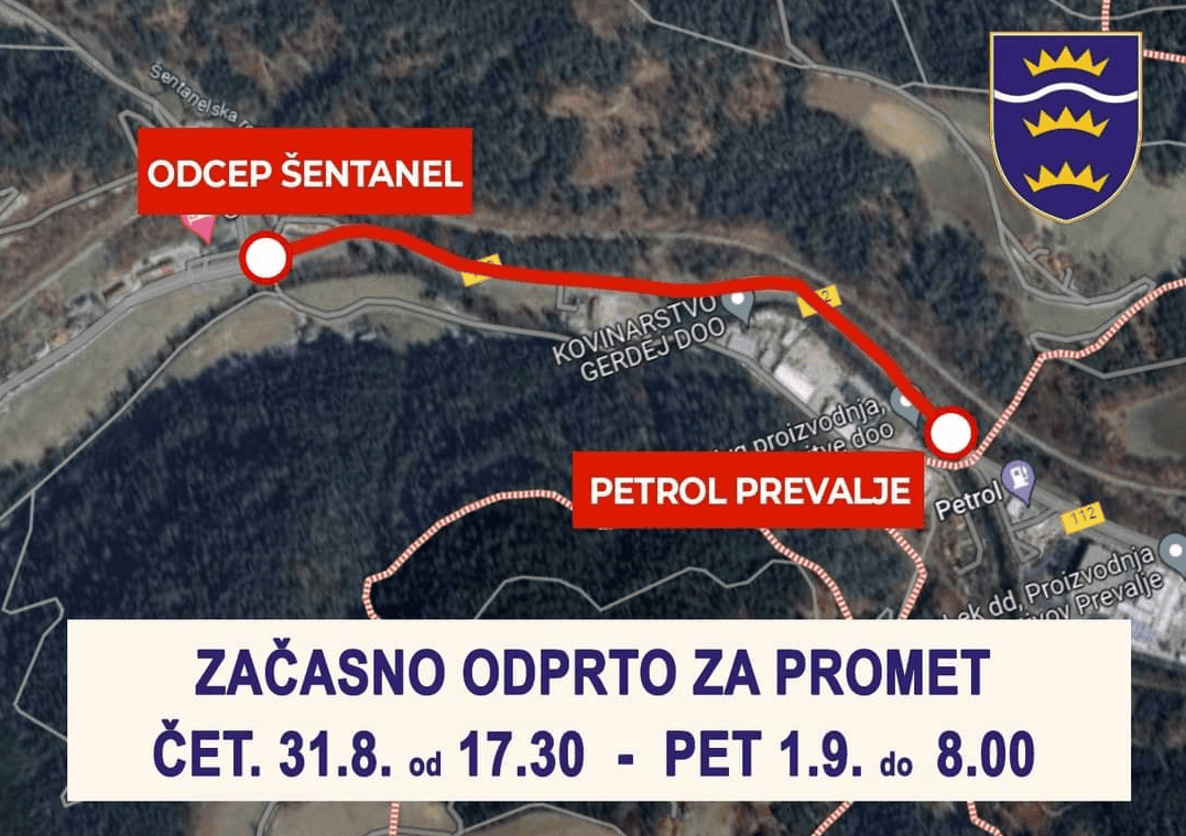 Občina Mežica obvešča vse uporabnike glavne ceste Ravne - Poljana, da bo ta začasno odprta za promet danes, 31. 8. 2023 od 17.30 do jutri zjutraj, 1. 9. 2023 8.00 ure.