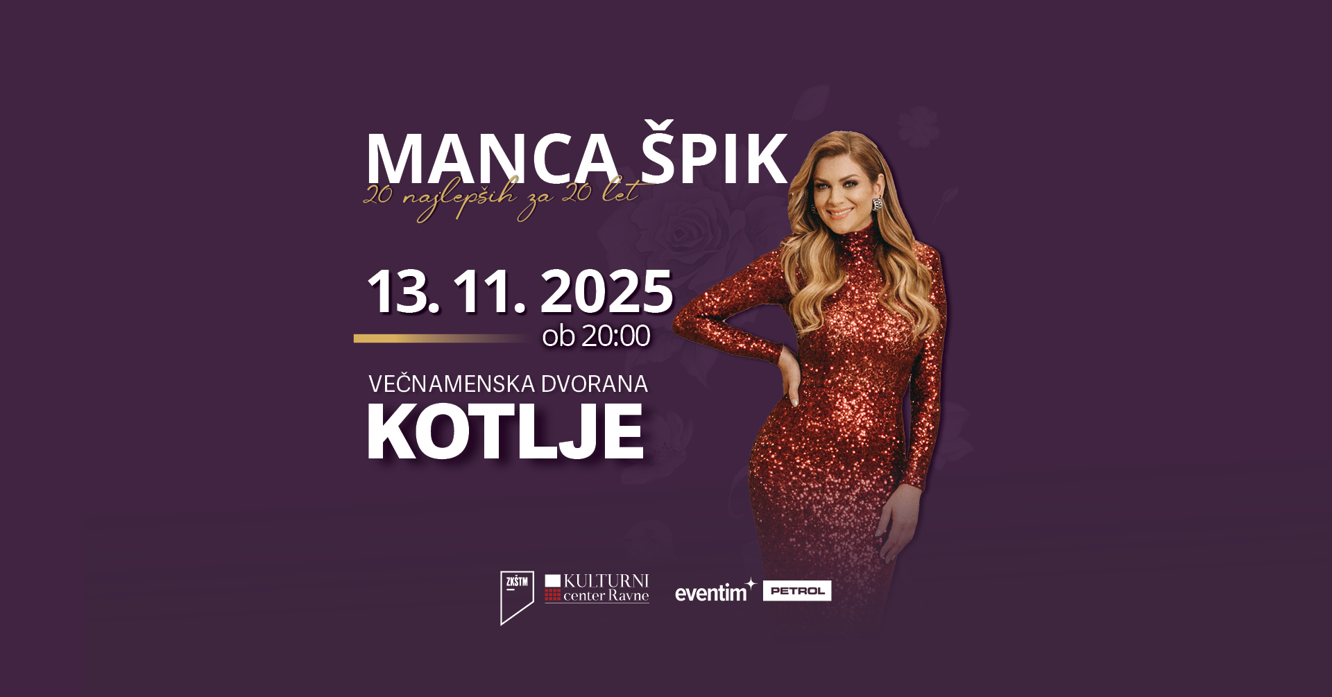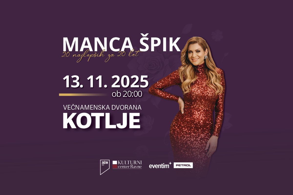 Manca Špik, ena najprepoznavnejših slovenskih pevk, bo pripravila prav poseben glasbeni večer. Koncert v Večnamenski dvorani Kotlje je del njene turneje 20 najlepših za 20 let, s katero obeležuje dve desetletji bogate glasbene kariere.
