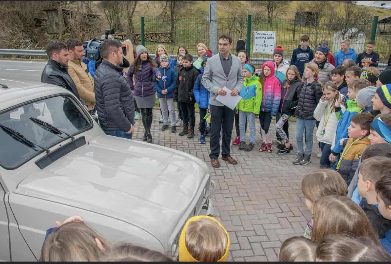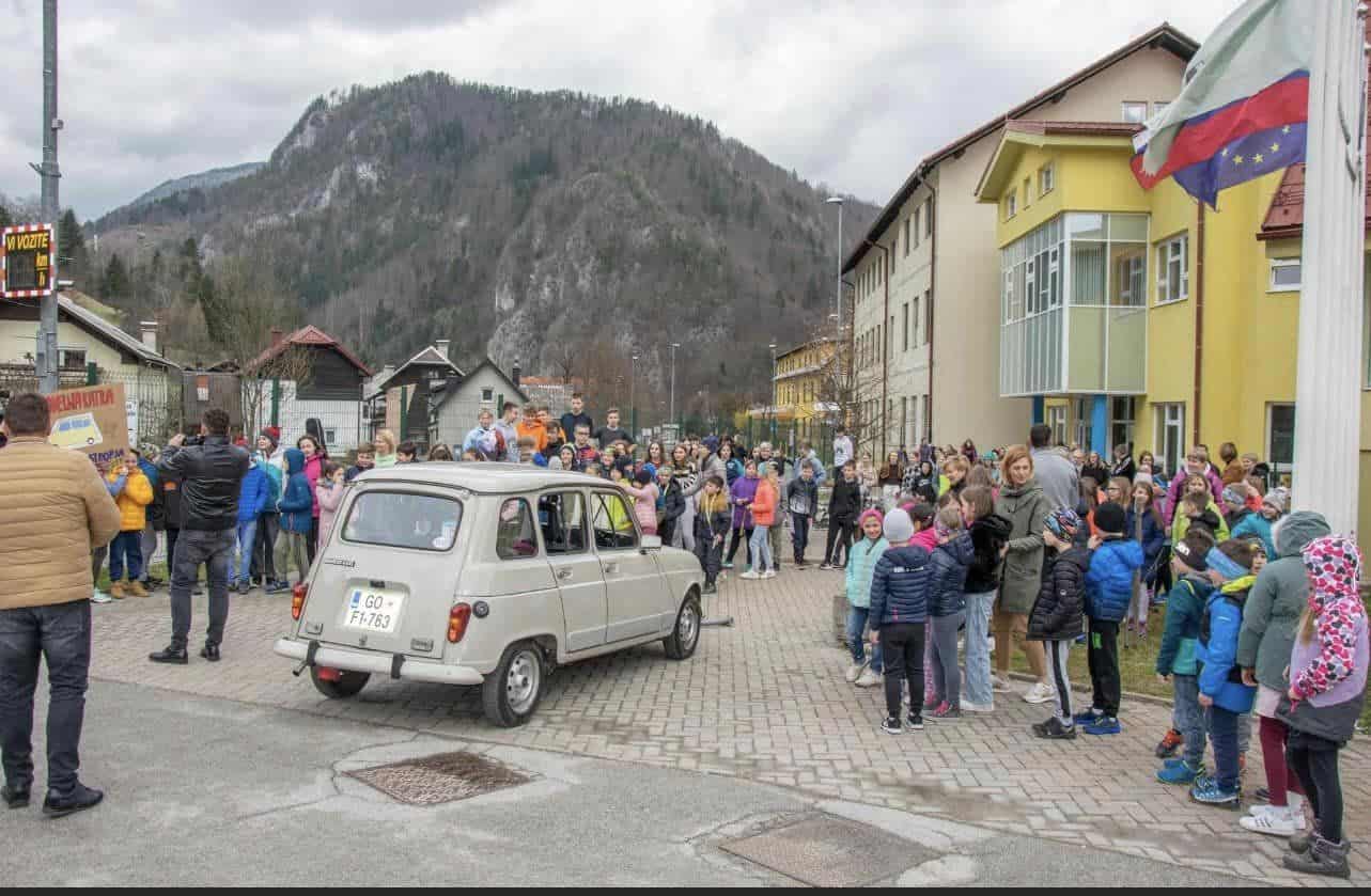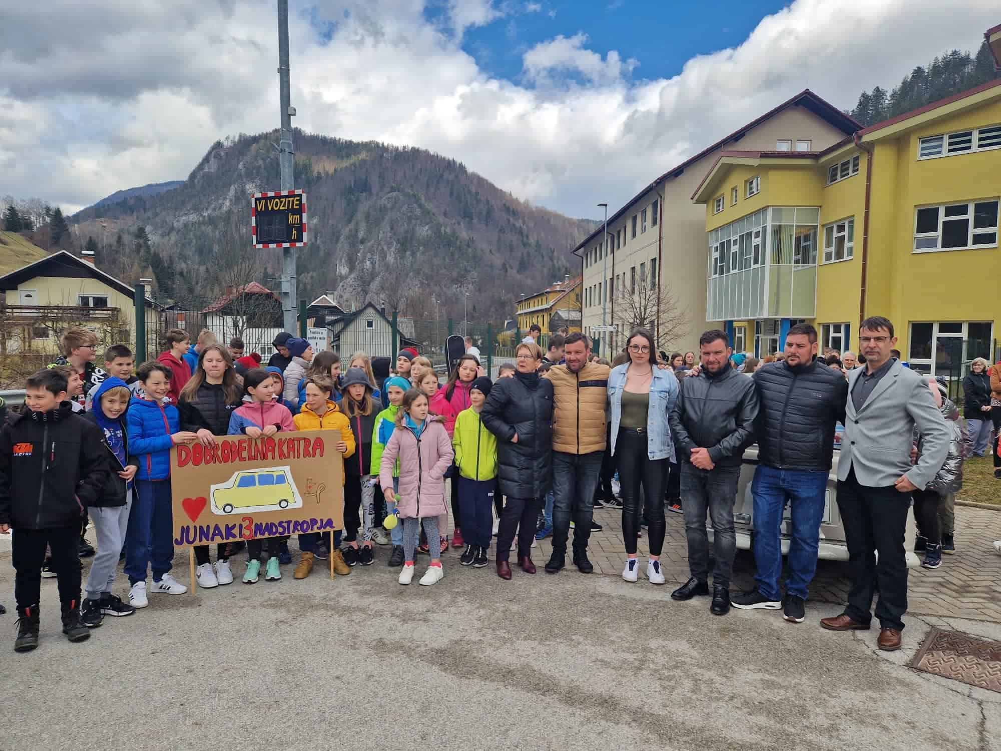 S svojo katro, ki je precej vzdržljiva, da je ne utrudi tudi tako naporna pot, so se podali naprej in zaslišalo se je petje otrok iz vrtca in šole. Recitacija - njihovi katri Fratar v čast. Toplo jim je bilo pri srcu.