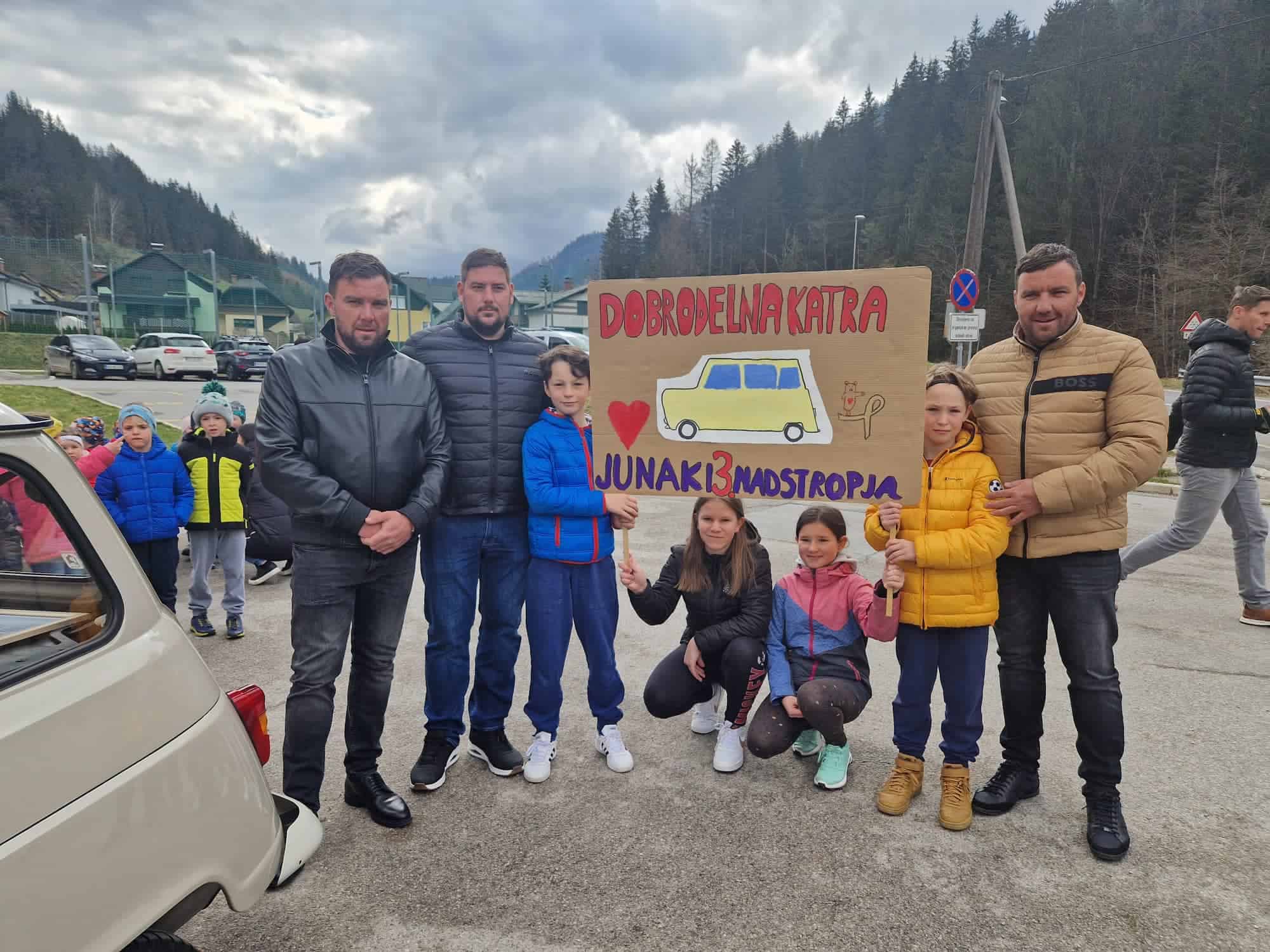 Za konec napornega dne je sledila še ena gasilska fotografija s prijateljem in donatorjem podjetja Transport Skrube. Katra se postavila ponosno pred tovornjake. Med njimi je bila res najmanjša in najskromnejša, a z velikim srcem, ki piše eno najlepših dobrodelnih zgodb zadnjega časa.