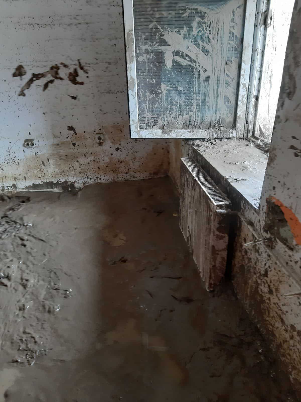 Skupaj z gasilci sta poskusila odpreti vhodna vrata, a se zaradi vsega mulja niso bila zmožna odpreti. Zato so šli skozi okno, ki ga je sila vode odprla med poplavo in vstopila v stanovanje, ki ni bilo niti približek temu, kar sta pustila ob odhodu na dopust.
