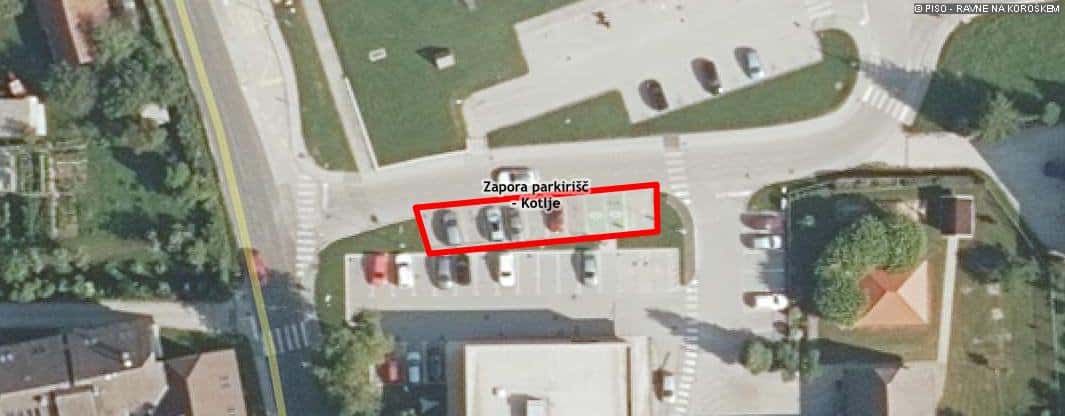 Z Občine Ravne na Koroškem so danes, 9. maja 2023, sporočili, da bodo zaradi zagotavljanja pretočnosti prometa ob izgradnji krožišča v Kotljah do nadaljnjega zaprta parkirišča ob javni poti 850771 (Cesta v naselju Kotlje XII), kar prikazuje tudi spodnja grafika.