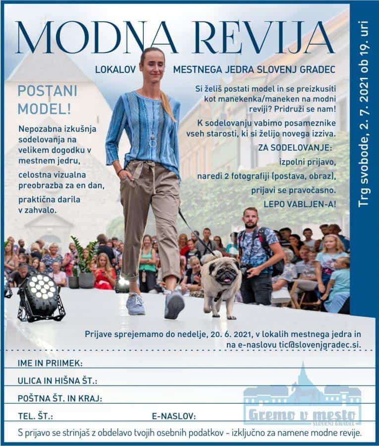Če želiš postati model in se preizkusiti kot maneken ali manekenka se lahko prijaviš na elektronski naslov tic@slovenjgradec. si. Prijave zbirajo do vključno 20. 6. 2021.