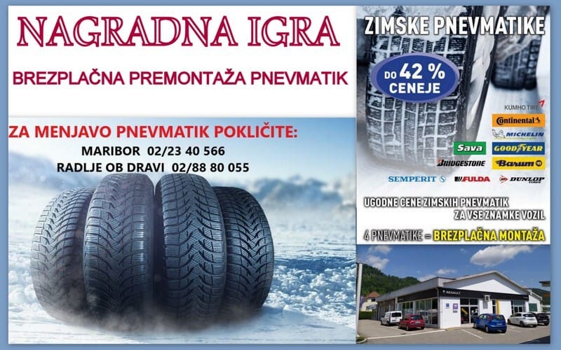 V sodelovanju s podjetjem AvtoKoletnik d.o.o. podarjamo brezplačno premontažo pnevmatik (1 komplet – 4 gume) v PE Radlje ob Dravi.