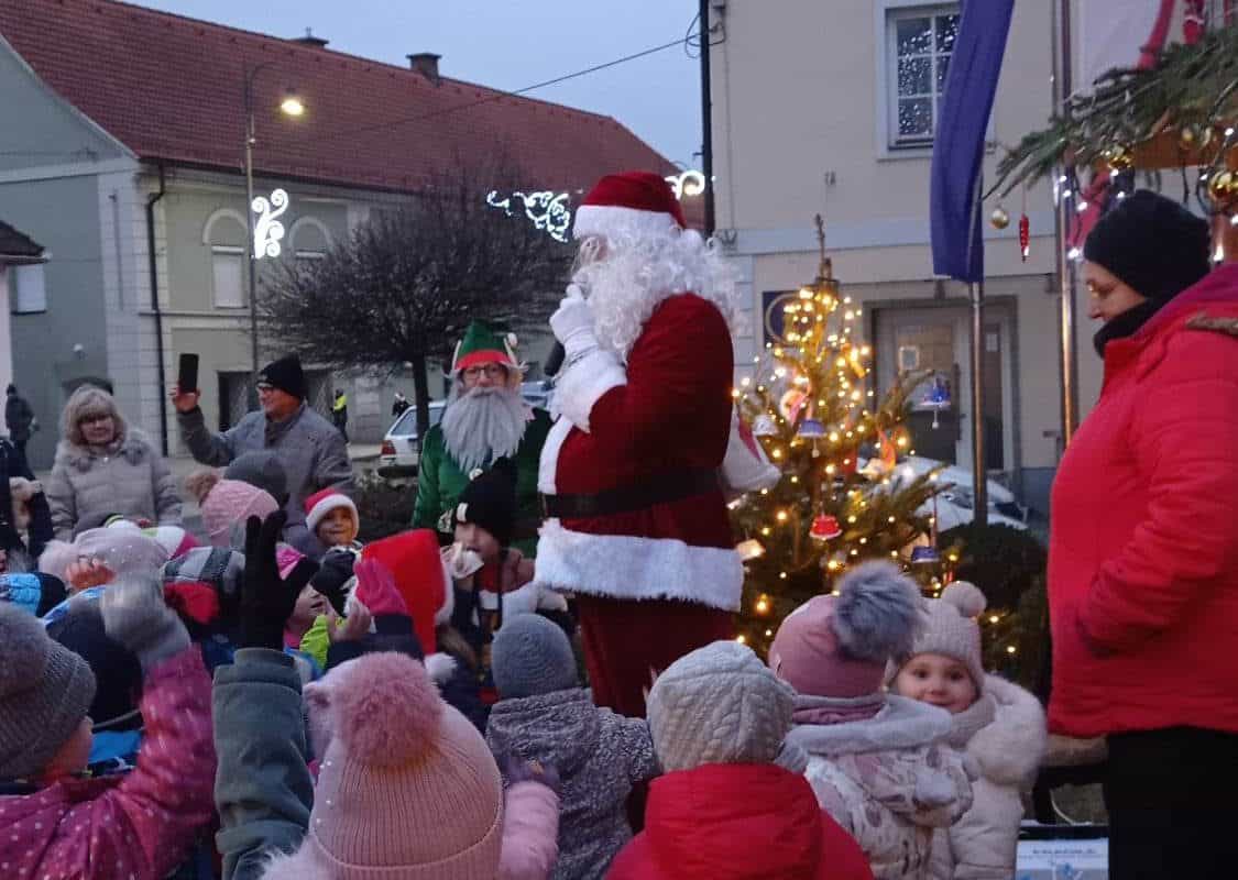 Sodelovali so otroci VVZ Vrtca Dravograd, ki so skupaj z vzgojiteljicami okrasili novoletni jelki s svojimi izdelki. Animatorka Vesna je otroke med čakanjem na božička odlično animirala in jih z zanimivim programom dodobra ogrela. Medtem pa sta iz Starega gradu prišla božiček in škratek in sta otrokom skupaj razdelila darila.