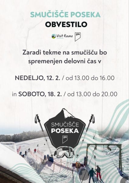 Zavod za kulturo, šport, turizem in mladinske dejavnosti Ravne na Koroškem obvešča, da bo smučišče Poseka to nedeljo, 12. februarja in v soboto, 18. februarja zaradi tekme na smučišču obratovalo po spremenjenem delovnem času.