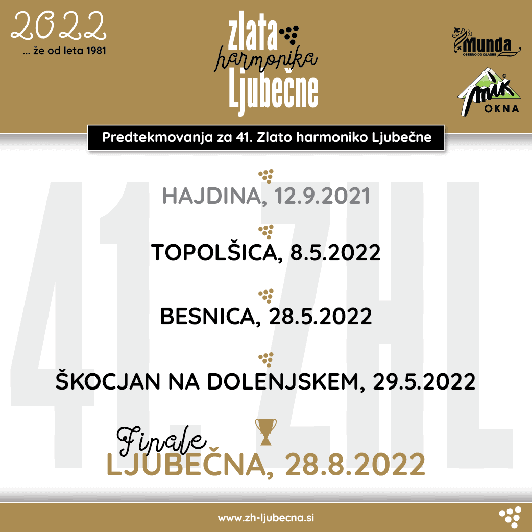 "Je pa res, da tisti ki nadaljujemo s tem lepim poslanstvom, delamo še bolj pridno. Zato vabilo učiteljem, pripravite svoje učence in se vidimo na letošnji ZH Ljubečne 2022," pogovor sklene predsednik Zlate harmonike Ljubečna, ki hkrati tudi poučuje v Glasbenem centru Goličnik. Več informacij o tekmovanju najdete TUKAJ.