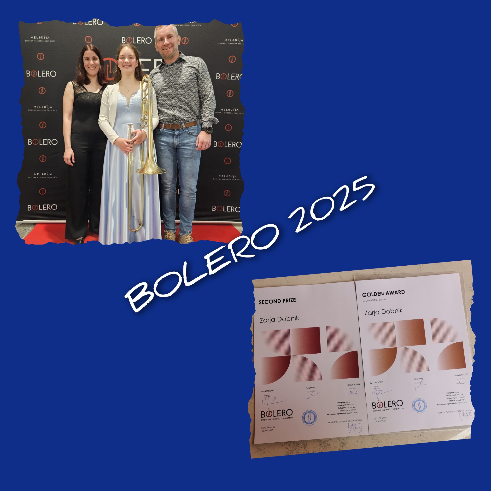 Članica KD Pihalnega orkestra Slovenj Gradec Zarja Dobnik je na 5. mednarodnem glasbenem tekmovanju BOLERO, ki je potekalo 21. maja 2025, dosegla izjemen uspeh.