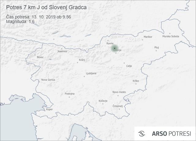 Po podatkih Agencije RS za okolje so seizmografi danes zjutraj ob 9.56. uri 7 km J od Slovenj Gradca zabeležili potres.