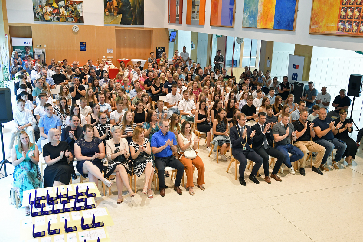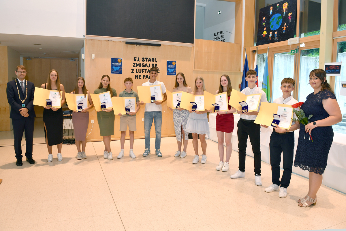 Kot vsako leto, so bili prejemniki zlatih petic nagrajeni tudi s spominskim darilom Zlatarstva Pečnik, ki ga je odličnjakom podelil župan dr. Tomaž Rožen ter vodja županovega urada Janja Blatnik.