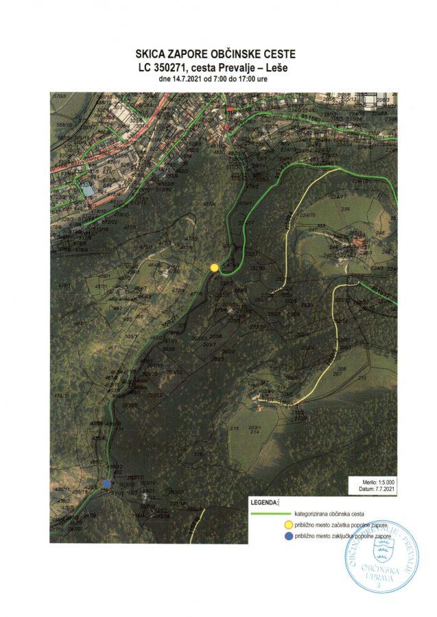 Kot je navedeno na spletni strani občine, bo cesta zaprta v sredo, 14. julija, in sicer med 7. in 17. uro.
