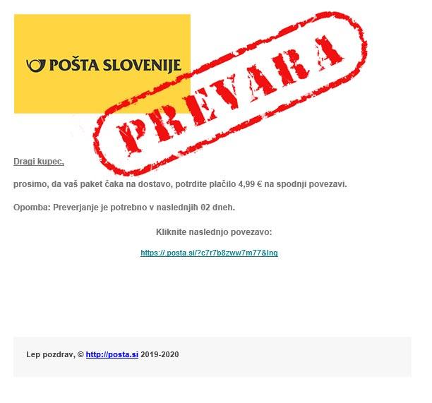 Gre za lažno sporočilo, saj Pošta Slovenije ne zahteva plačila poštnine vnaprej, poštnino plačate vedno ob prevzemu pošiljke, navajajo na Pošti Slovenije.