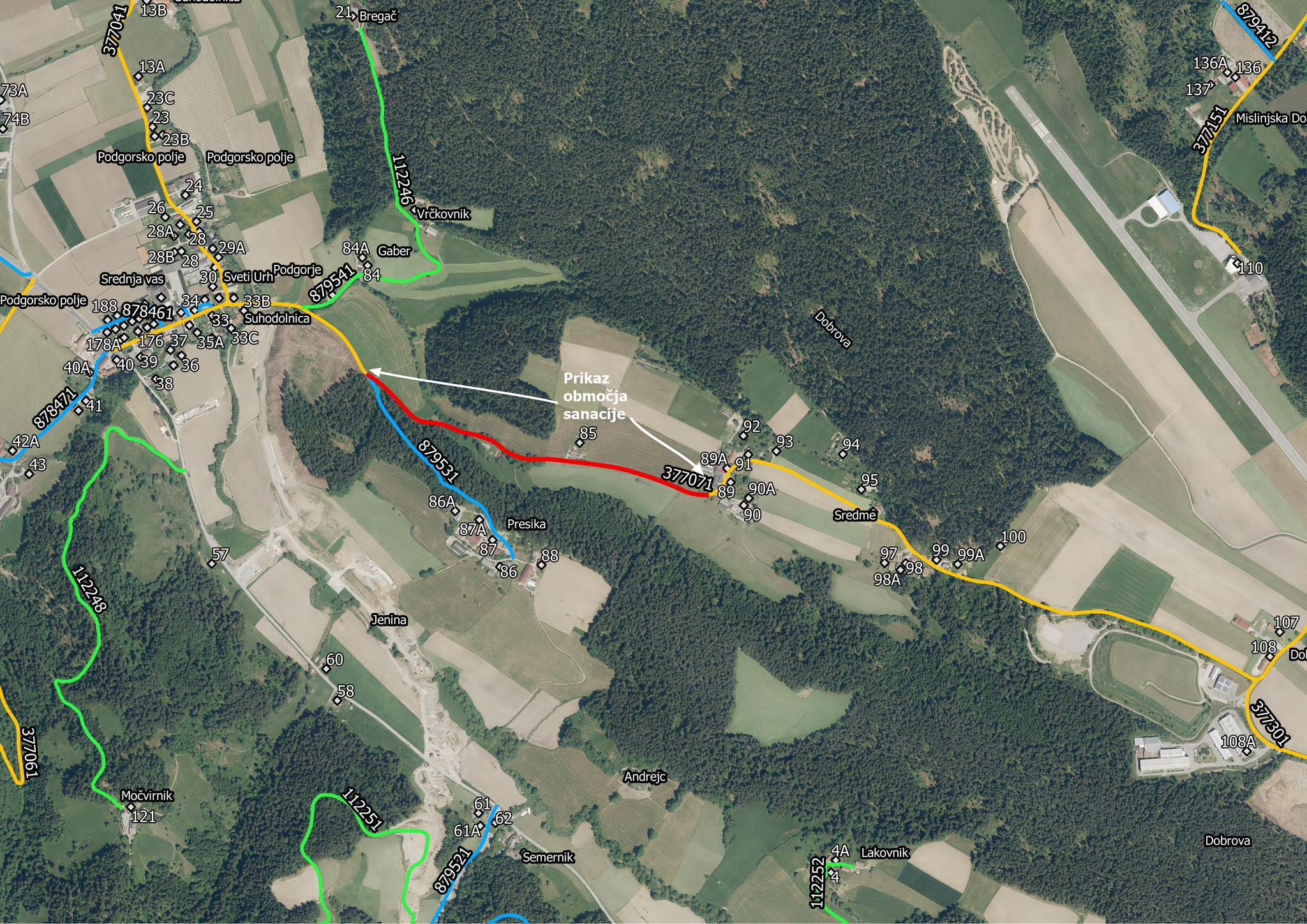 Zapora zajema območje od odcepa Preseka do območja stanovanjskih hiš: Podgorje 90, 90a, 89 in 89a.