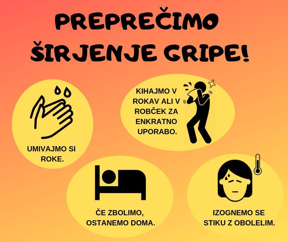 "Gripi se lahko izognemo z upoštevanjem preprostih pravil. Še vedno se lahko tudi cepite pri izbranih zdravnikih in v naših območnih ambulantah. Cepljenje priporočamo vsem prebivalcem, ki ne kažejo znakov okužbe, še posebej pa ogroženim skupinam!"