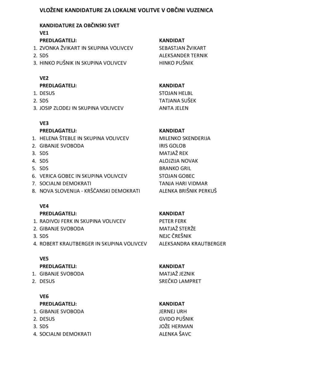Liste, ki so vložile kandidaturo za občinski svet: