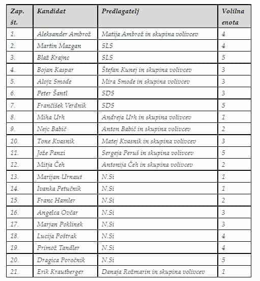 Liste kandidatov za člane občinskega sveta (10 kandidatur):