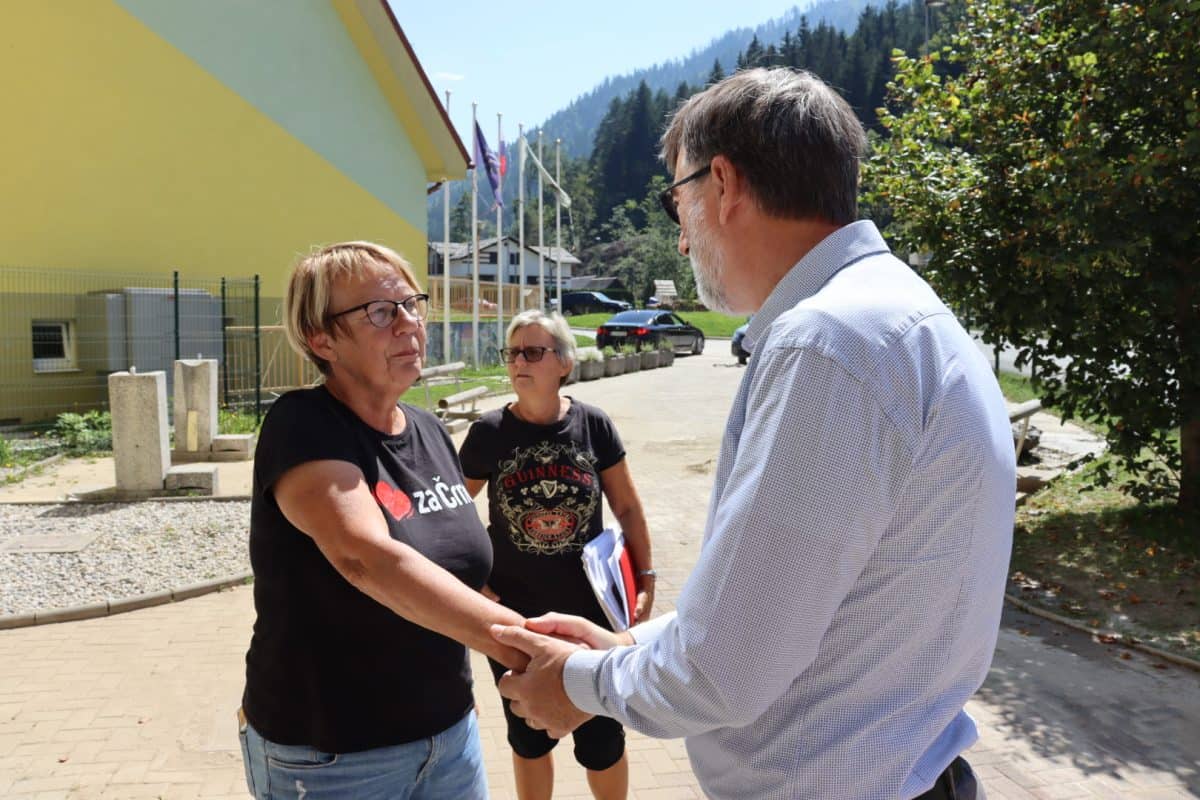 Minister za vzgojo in izobraževanje se je sestal z vodstvom Osnovne šole Mežica, ki v ujmi sicer ni utrpela posledic, so pa prostori šole trenutno namenjeni Slovenski vojski, ki si je tam zaradi intervencijskih del uredila začasno oporišče.