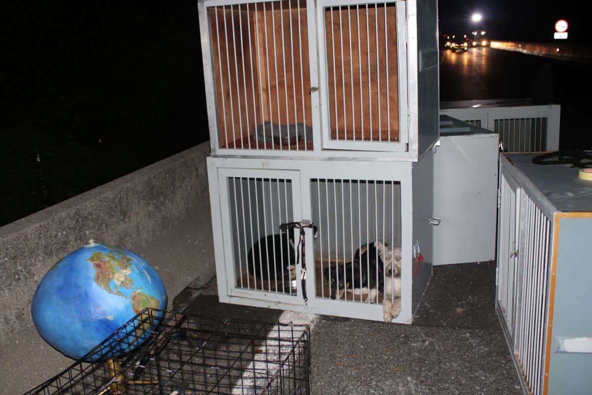 Nekaj po 19. uri so na avtocesti med izvozoma Slovenske Konjice in Dramlje obravnavali prometno nesrečo, zaradi katere je bila avtocesta dlje časa zaprta. Prometno nesrečo je povzročil voznik osebnega vozila Ford Transit, ruski državljan, ki hitrosti vožnje ni prilagodil poteku ceste in tehničnim lastnostim vozila. Priklopni del vozila je z desnega voznega pasu najprej zaneslo v desno, kjer je oplazilo betonsko zaščitno ograjo, nato pa še skrajno v levo, kjer je prav tako oplazilo betonsko zaščitno ograjo, nakar se je vozilo s priklopnikom prevrnilo. V priklopnem delu vozila je voznik v kletkah prevažal 11 psov. Dva od njih sta po trčenju pobegnila z vozila, ostalih devet je ostalo v kletkah. Oba psa, ki sta bila na vozišču, so takoj ustrezno zavarovali. Nihče od psov ni bil vidno poškodovan. Predstavniki veterinarske inšpekcije so poskrbeli za njihovo varno namestitev. Lastnika in sopotnici so zaradi lažjih poškodb odpeljali v celjsko bolnišnico. Zaradi suma storitve kaznivega dejanja nevarne vožnje bodo voznika kazensko ovadili.