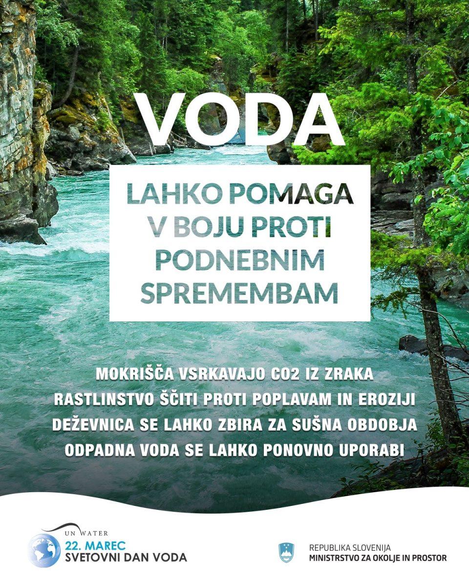 Svetovni dan voda poudarja pomen vode in zavedanja, da 2,2 milijarde ljudi nima dostopa do pitne vode. Ministrstvo za okolje in prostor je ob trenutnih razmerah izbruha epidemije novega koronavirusa obvestilo izvajalce javnih služb, da naj dosledno upoštevajo preventivne zdravstvene protokole, saj bodo lahko tako nemoteno zagotavljali izvajanje javne službe oskrbe s pitno vodo ter odvajanja in čiščenja komunalnih odpadnih voda. Iz Nacionalnega inštituta za javno zdravje pa sporočajo, da je voda iz pipe varna za uživanje. Pitje vode iz pipe je tudi bolj zdravo in do okolja prijaznejše kot voda iz plastenke.