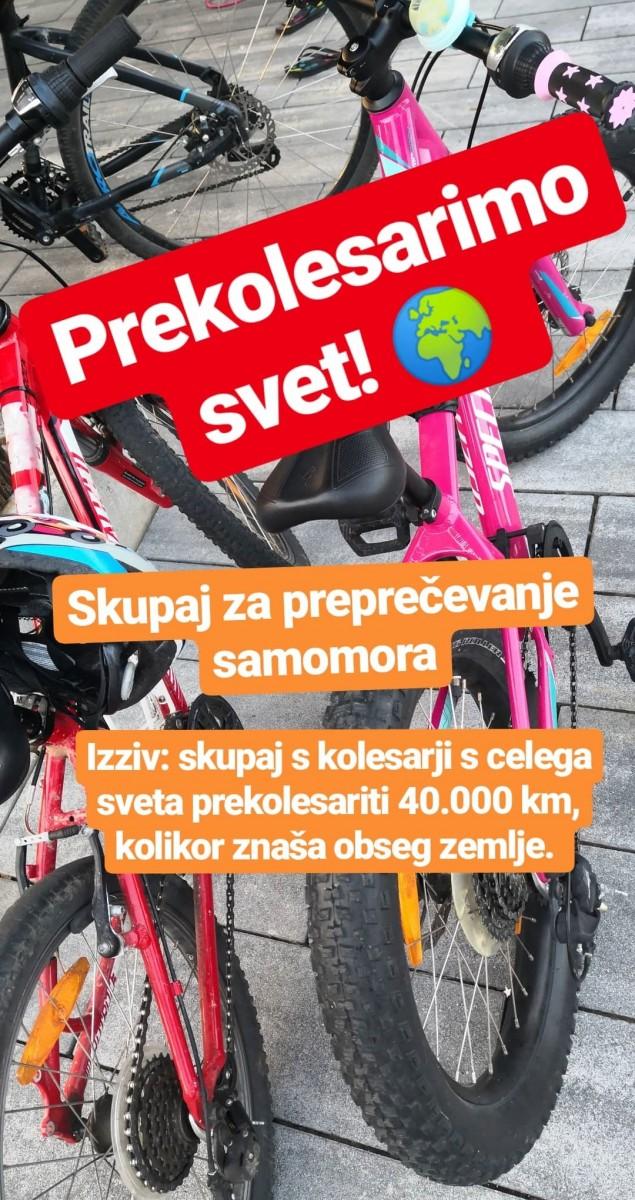 UP IAM Slovenski center za raziskovanje samomora, Nacionalni Inštitut za javno zdravje, Slovensko združenje za preprečevanje samomora, Center za psihološko svetovanje Posvet in Nacionalno združenje za kakovost življenja OZARA Slovenija vas vabijo, da se pridružite in sodelujete v akciji »Prekolesarimo svet« ob svetovnem dnevu preprečevanja samomora.