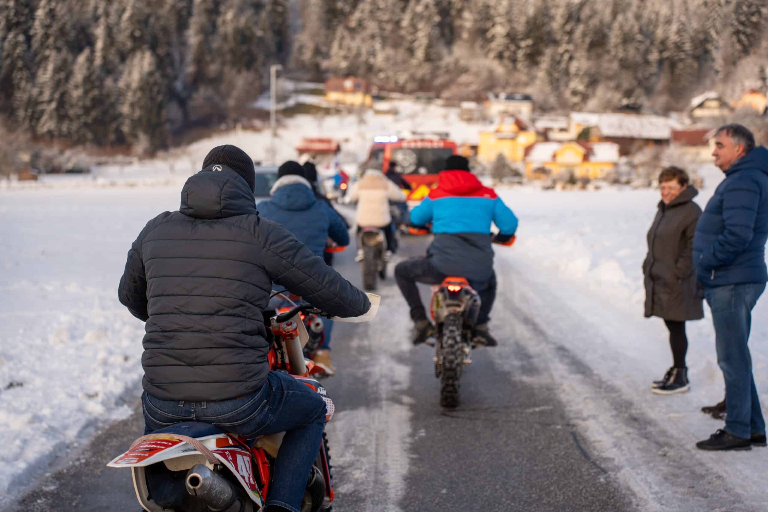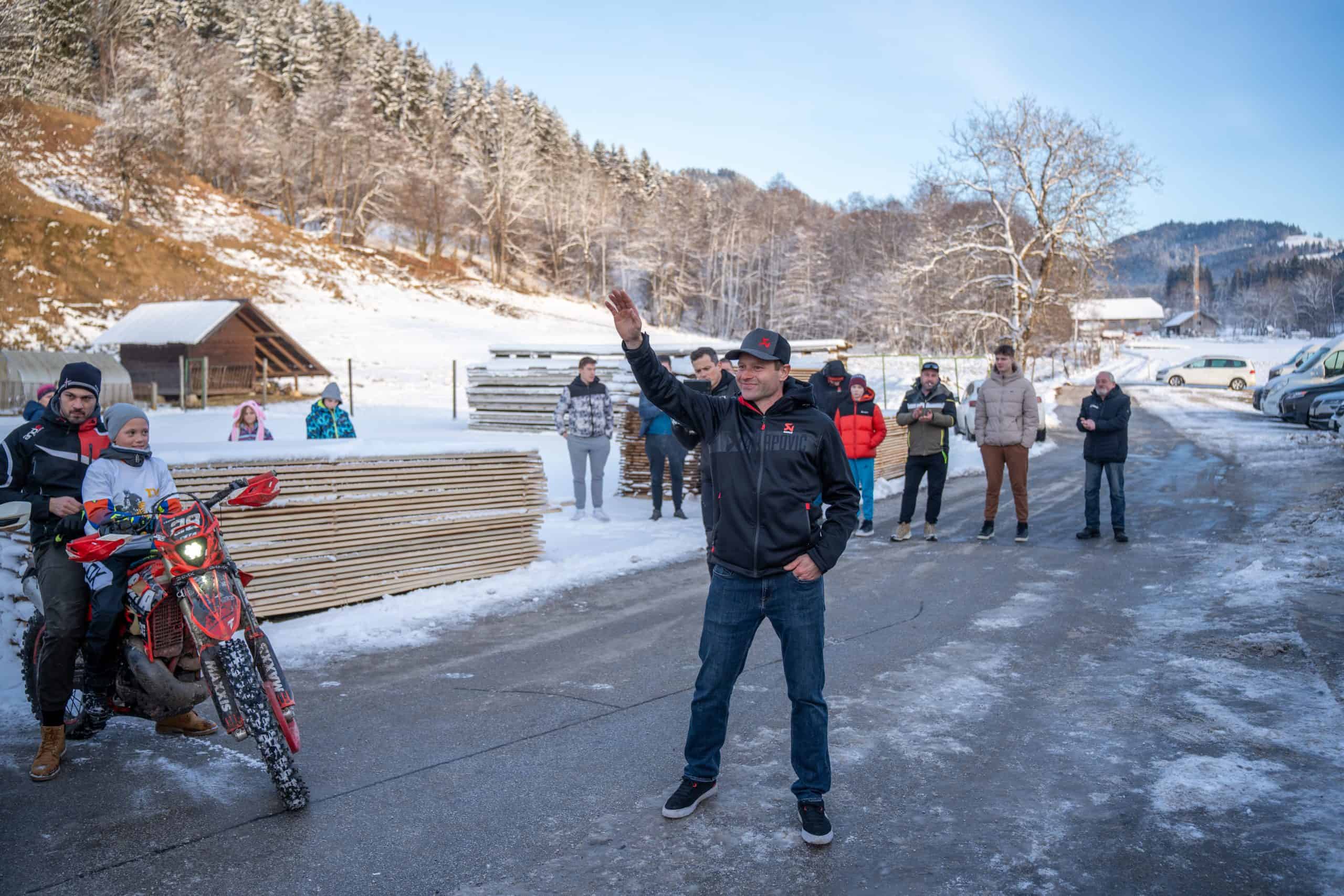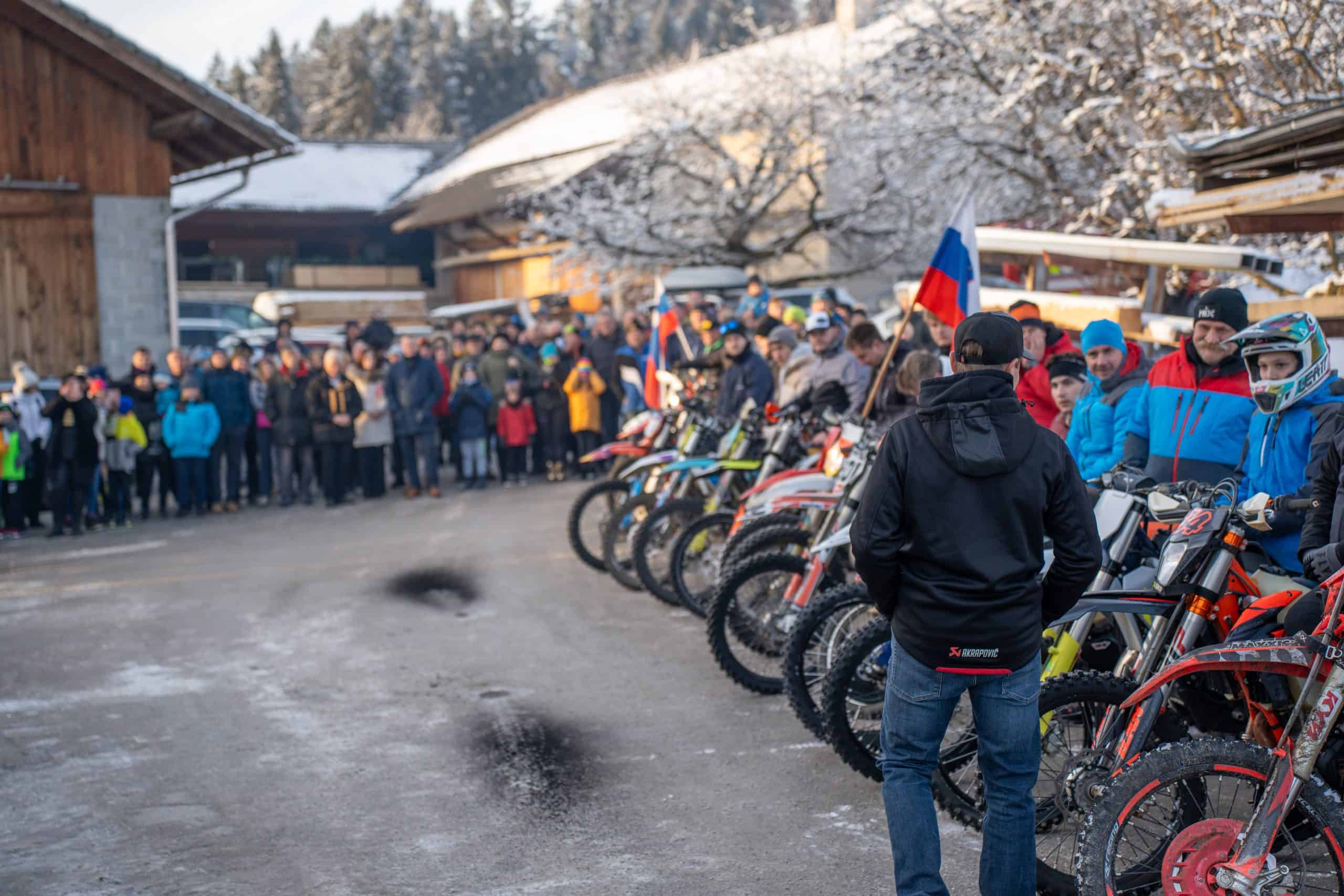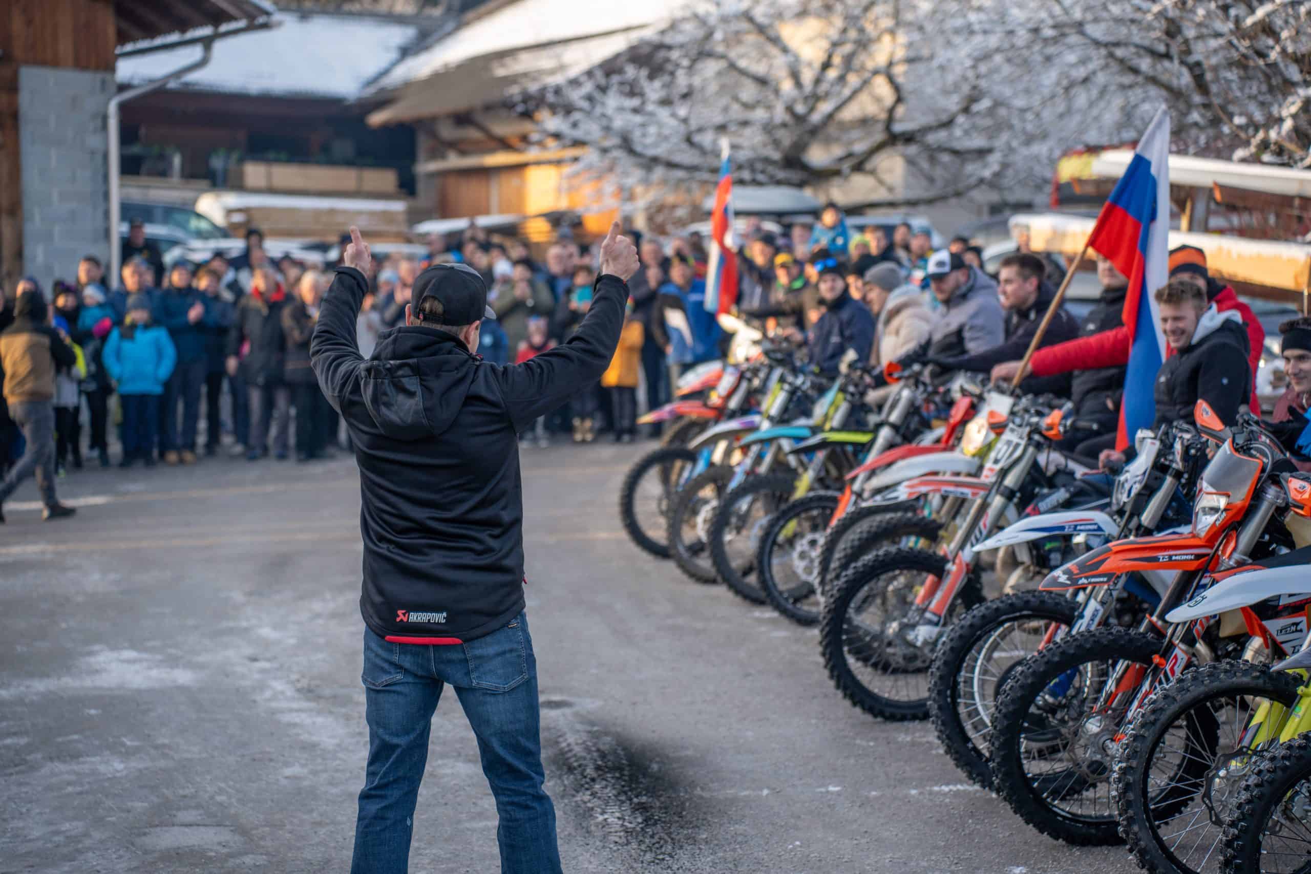 Zbrana množica, med njimi tudi prijatelji motoristi, je z aplavzom, vriskanjem in čestitkami pokazala Toniju, kako ponosni smo Korošci na njegove izjemne dosežke.