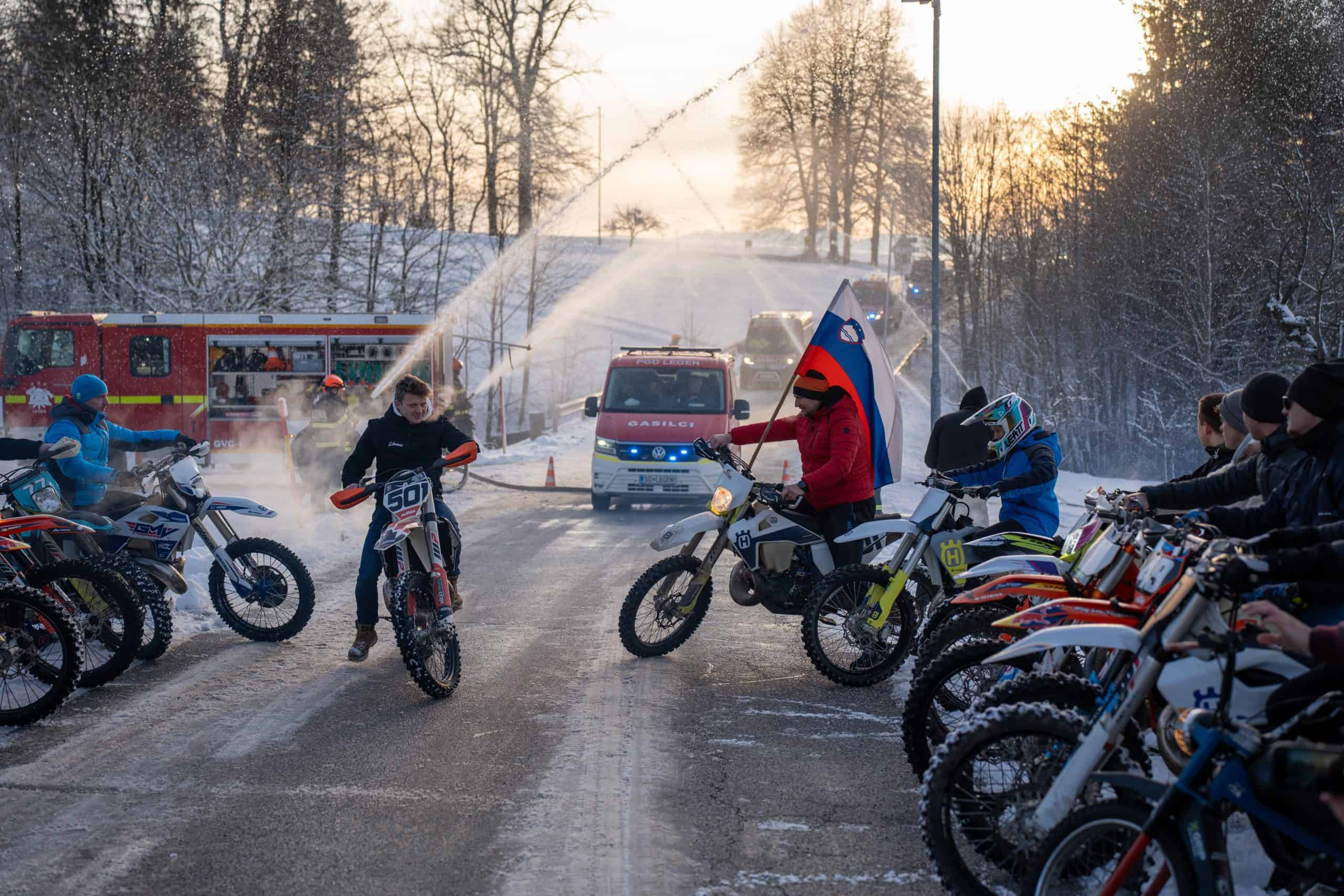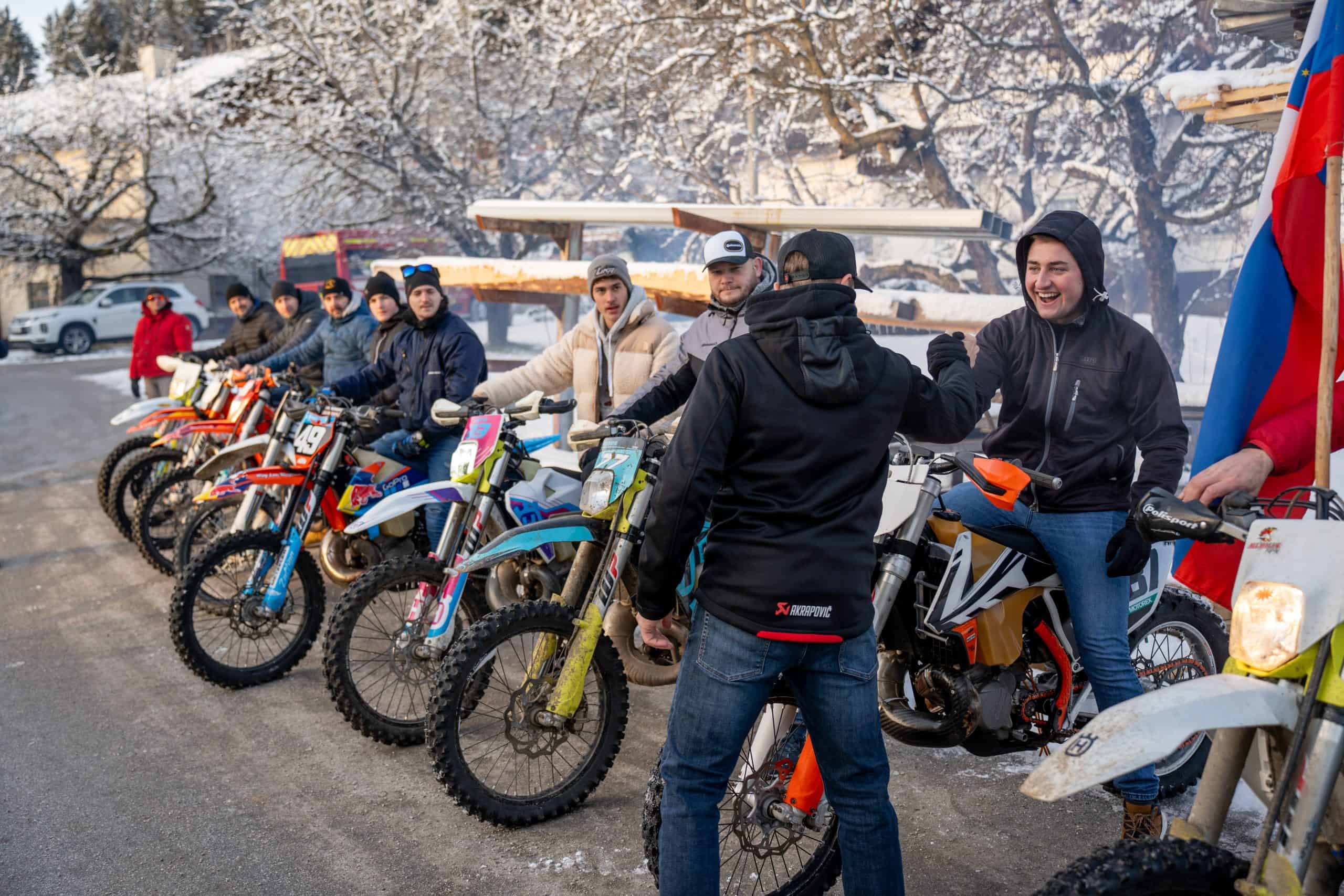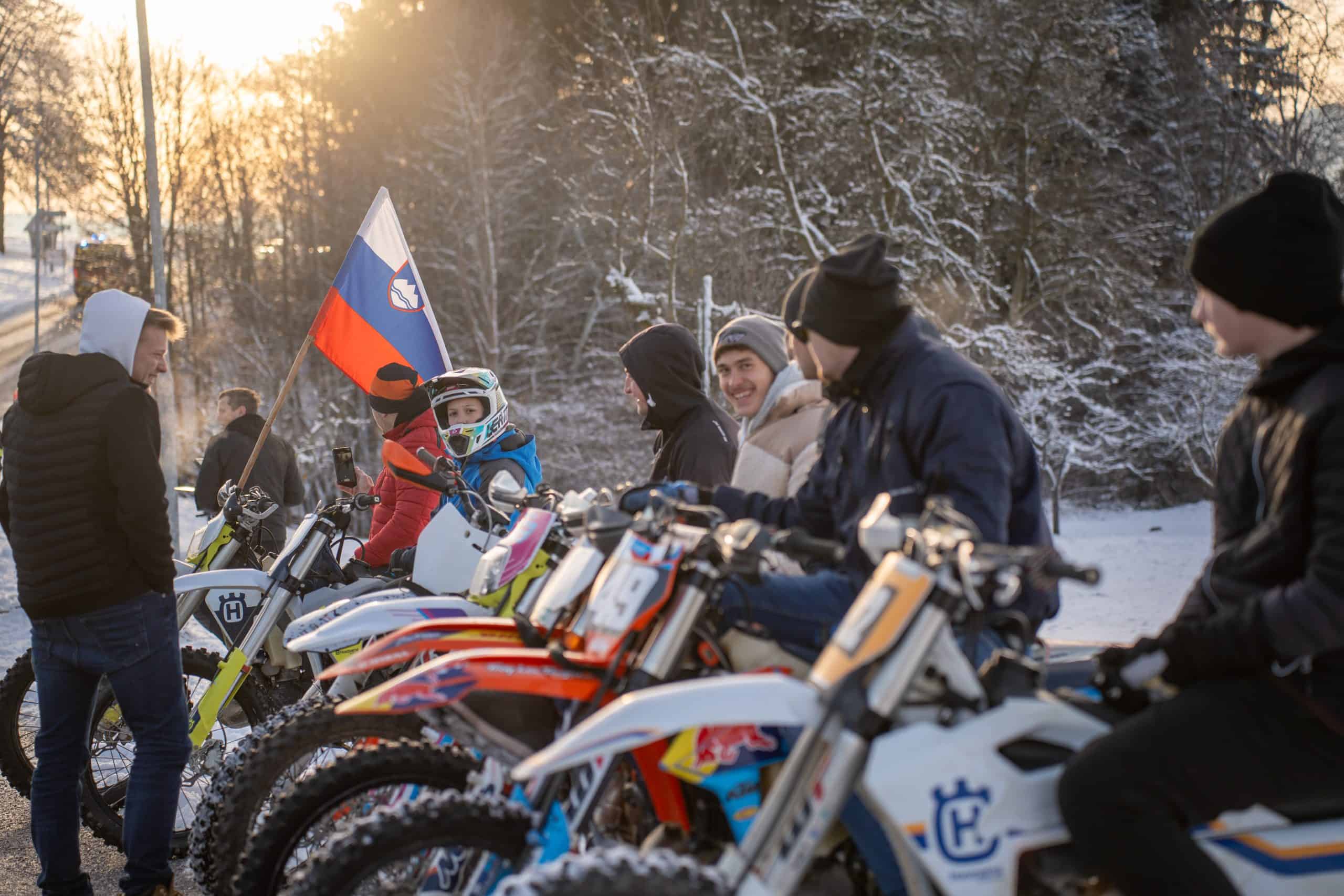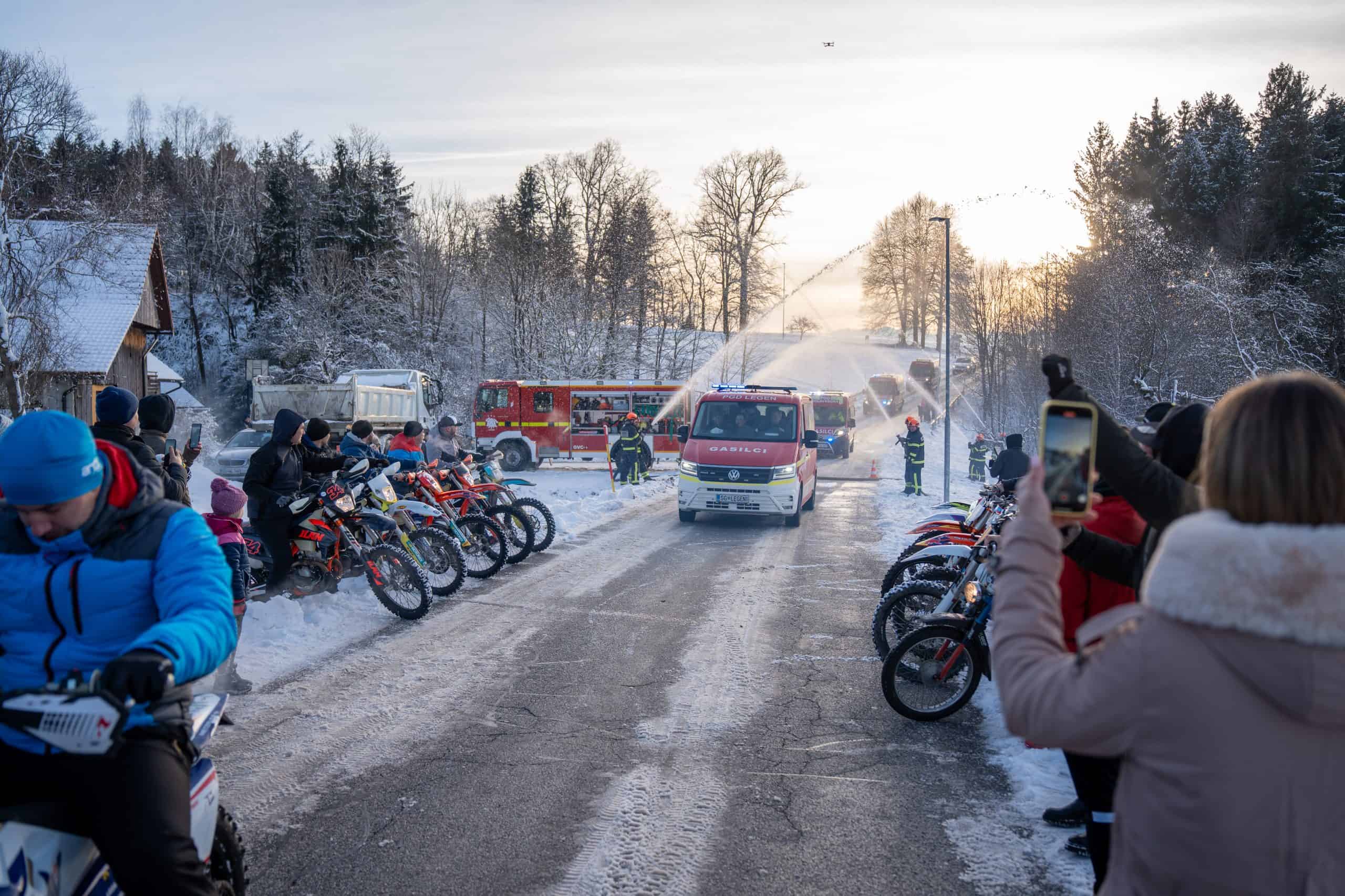 Zbrana množica, med njimi tudi prijatelji motoristi, je z aplavzom, vriskanjem in čestitkami pokazala Toniju, kako ponosni smo Korošci na njegove izjemne dosežke.