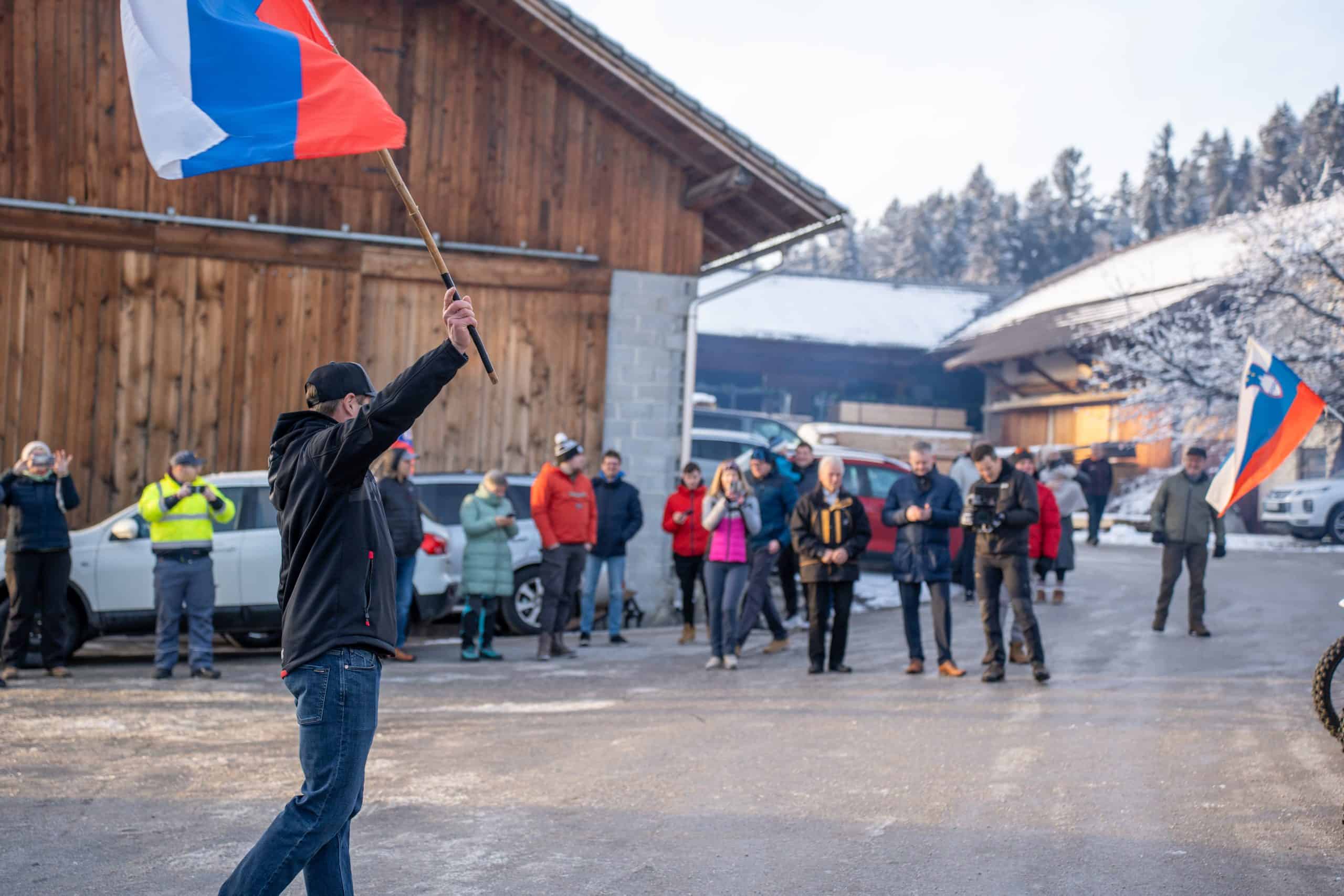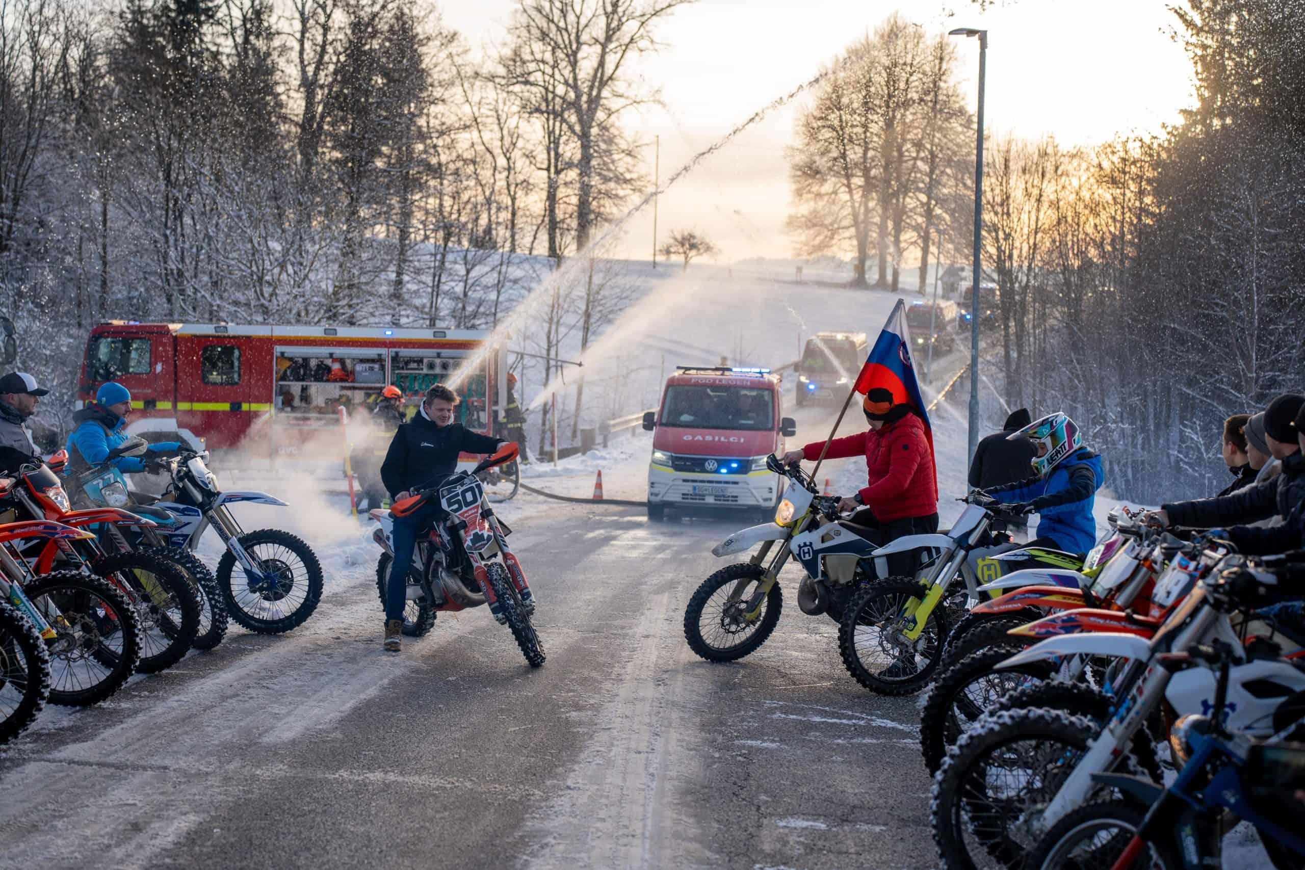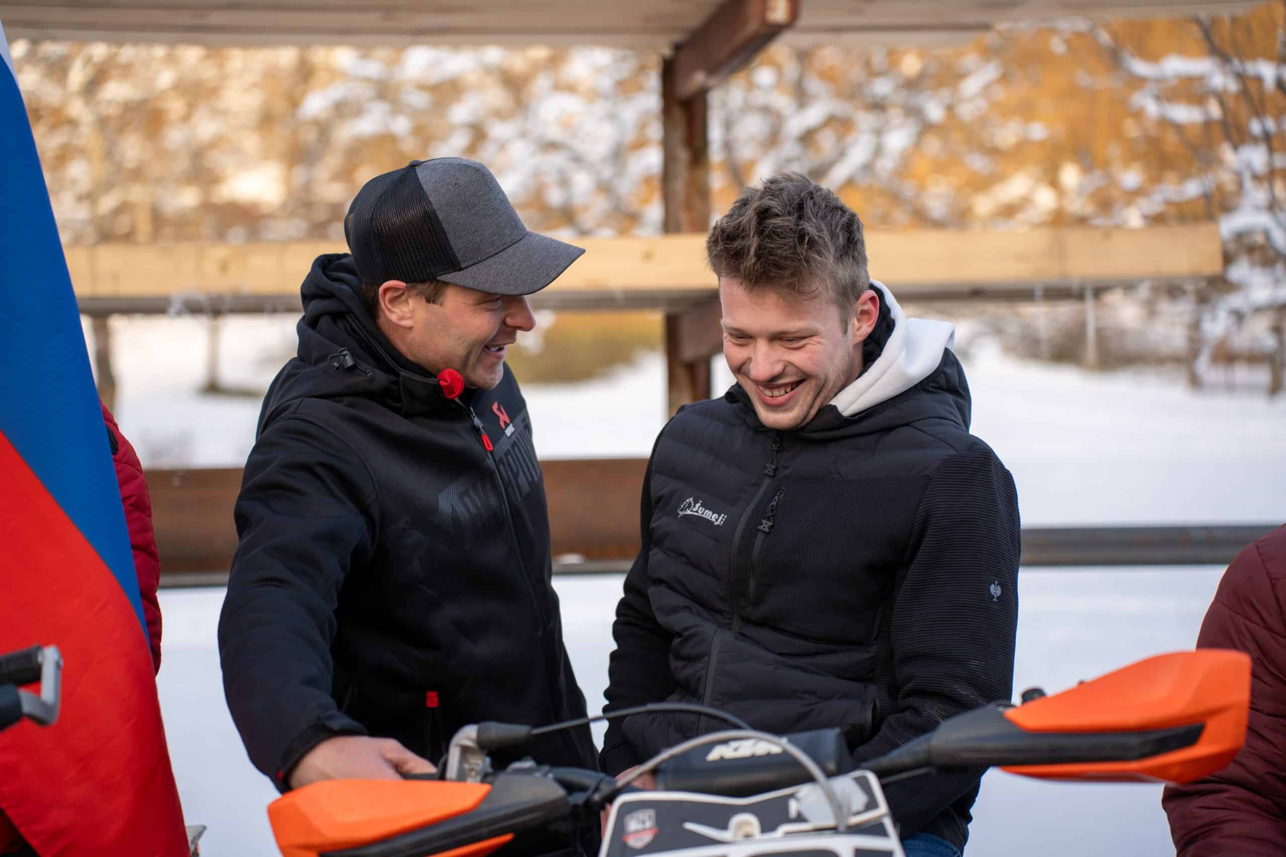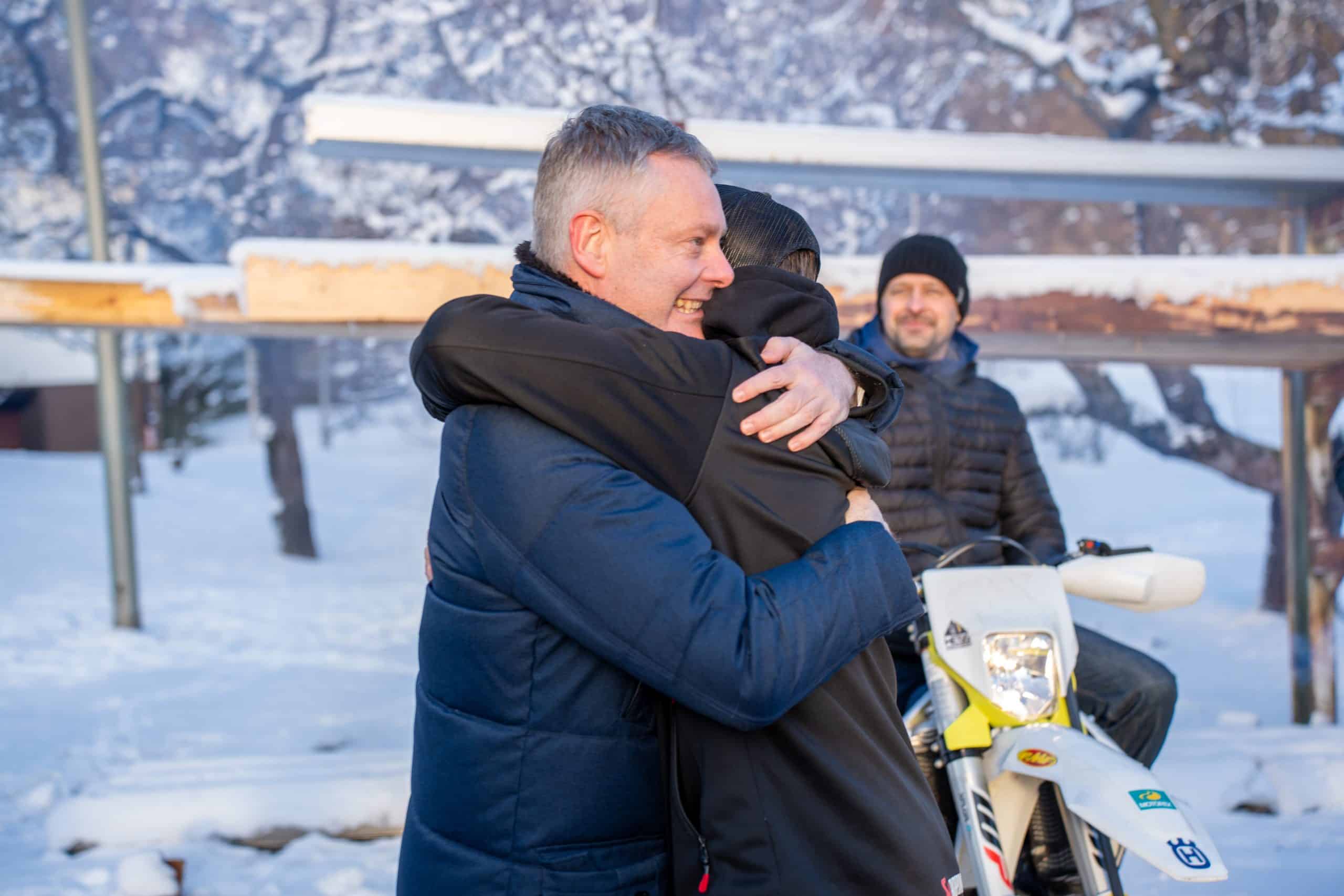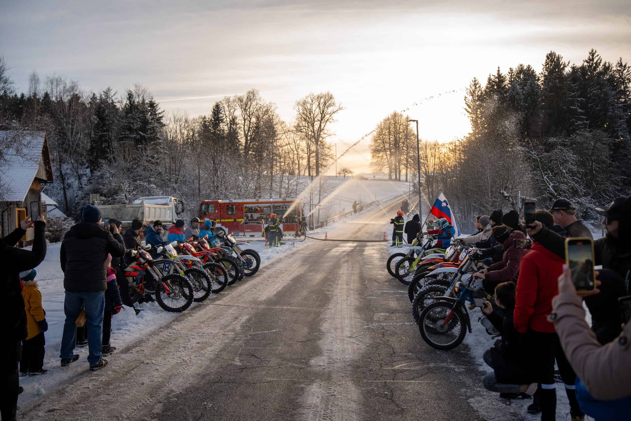 Zbrana množica, med njimi tudi prijatelji motoristi, je z aplavzom, vriskanjem in čestitkami pokazala Toniju, kako ponosni smo Korošci na njegove izjemne dosežke.