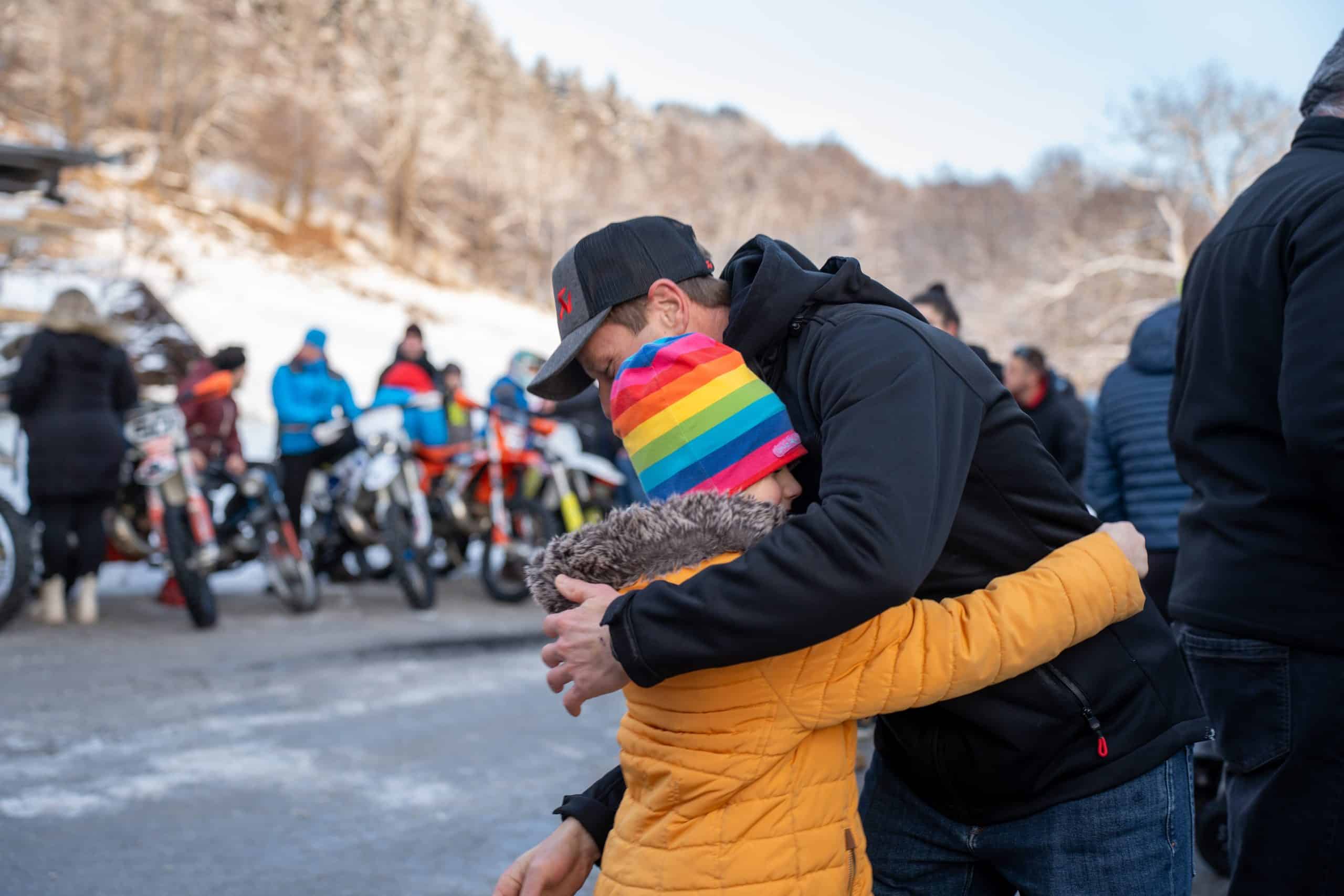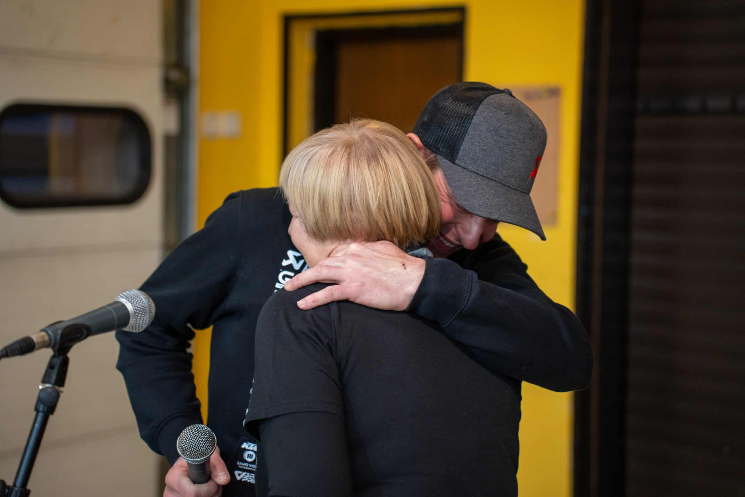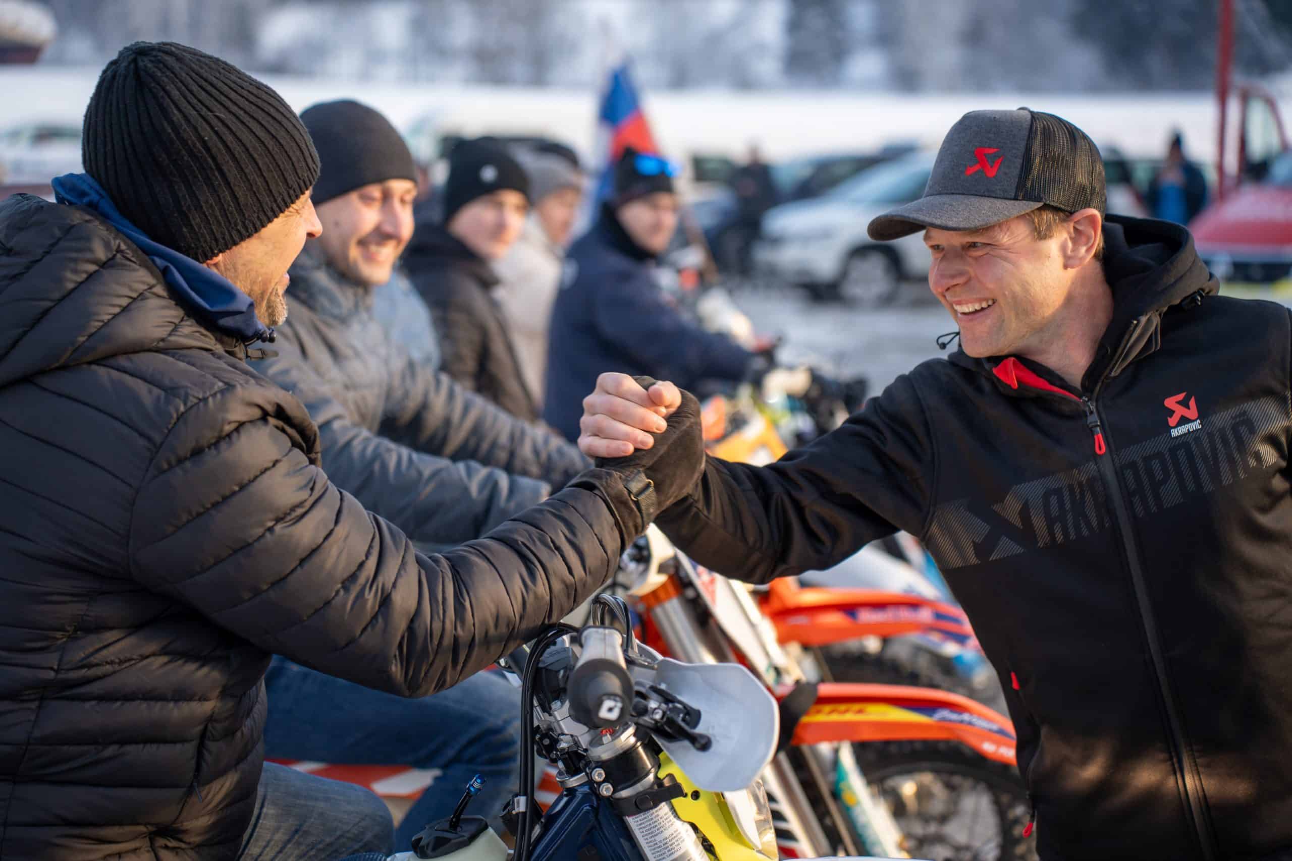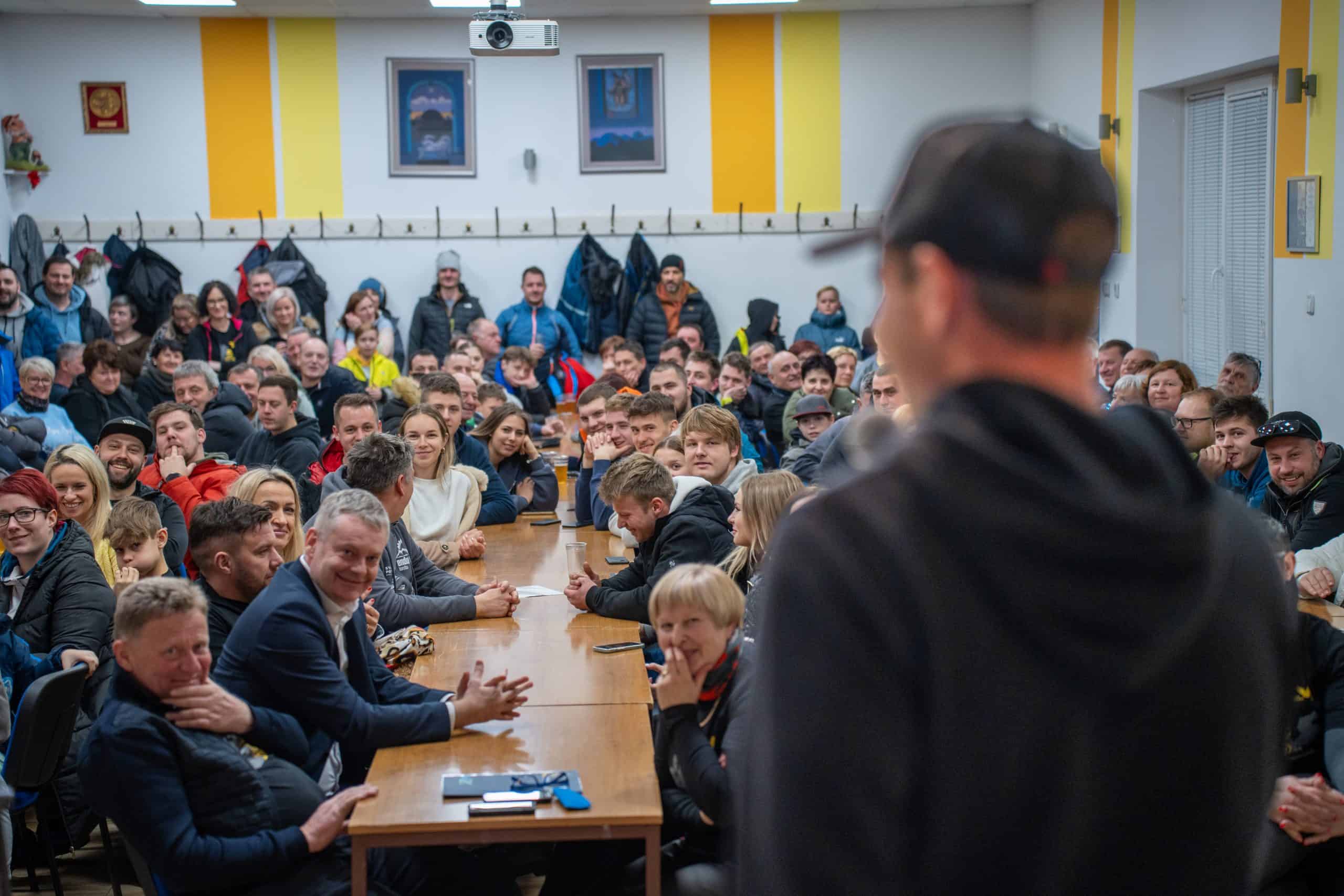 Zbrana množica, med njimi tudi prijatelji motoristi, je z aplavzom, vriskanjem in čestitkami pokazala Toniju, kako ponosni smo Korošci na njegove izjemne dosežke.